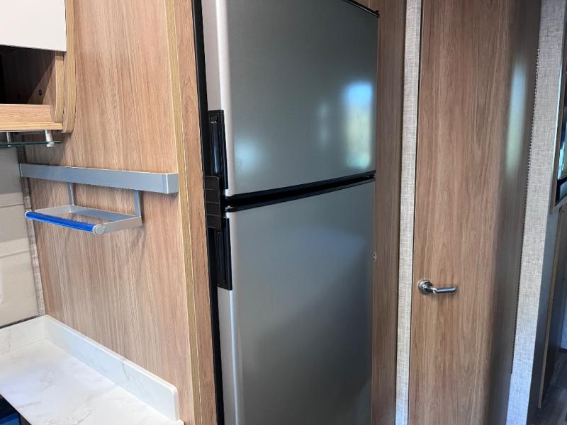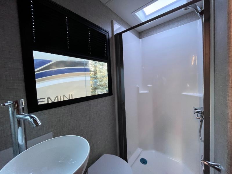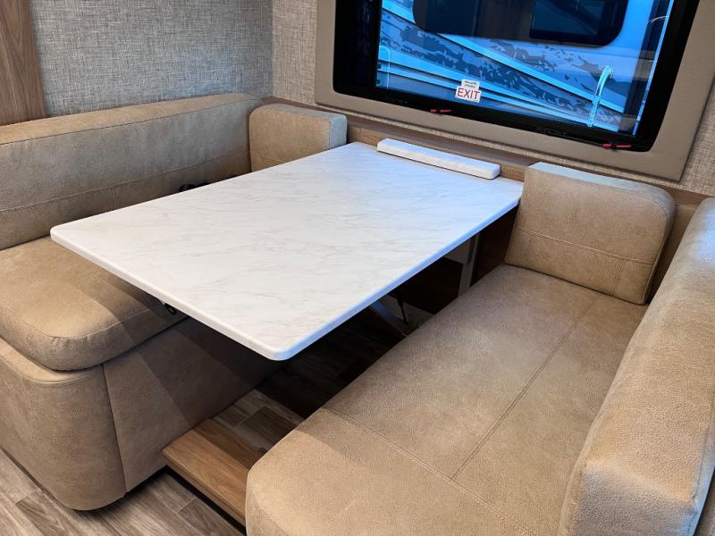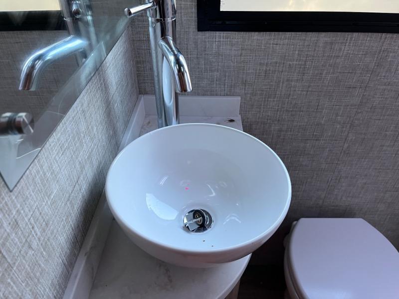 Experience unparalleled freedom and luxury with your favorite person in the most amazing motorhome, perfect to see nature along the highways and wherever the road takes you! You will find the perfect place to rest in the extra comfy king bed, there are nightstands and a spacious wardrobe for keeping all your belongings organized. In front of it, you will enjoy the convenience of the full bathroom, which features a 32” x 36” shower and has everything you need to unwind and relax when taking a bath. Cooking has never been easier thanks to the incredible kitchen, boasting a pantry, refrigerator, microwave, and a U-shape dinette where you can comfortably eat your meals, play board games, or have an entertaining time with your loved ones.