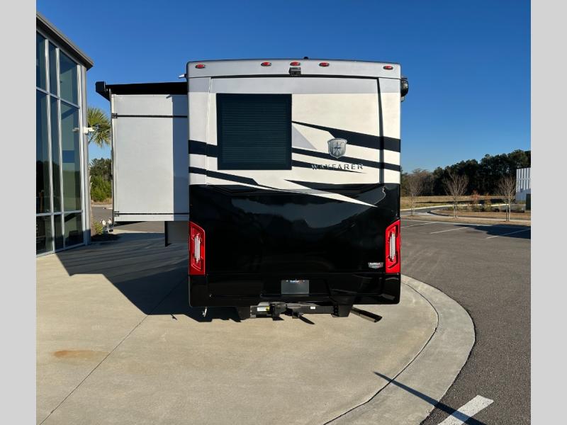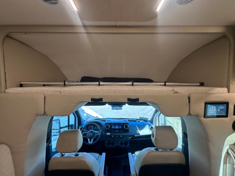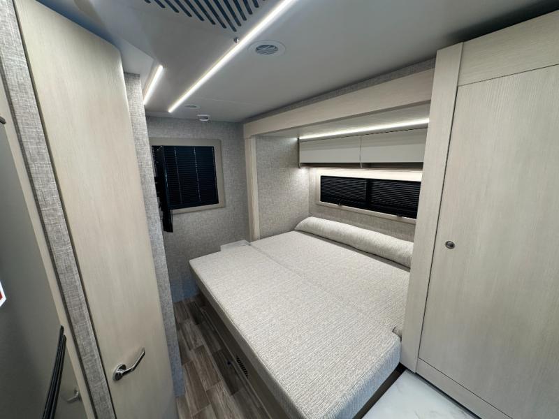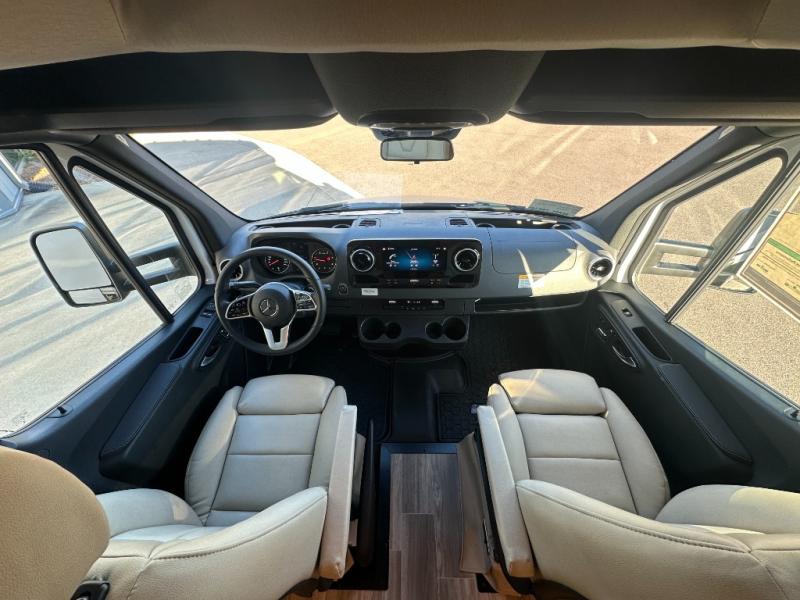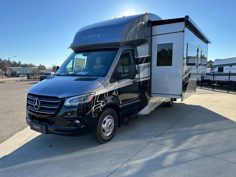 With any Wayfarer Class C diesel coach by Tiffin Motorhomes you will enjoy luxury features both inside and out. There are one-piece molded gel-coat fiberglass front and rear caps plus full-body paint and two layers of clear coat for added protection. The Mercedes-Benz 3500XD dual wheel cutaway chassis provides a strong foundation, and the 2.0L V4 turbo diesel high output 208 HP diesel engine with 332 lb-ft torque will keep you going adventure after adventure! You will love the drive just as much as the destination with adjustable captain's seats that are also heated, intelligent navigation, and a Mercedes-Benz MBUX multimedia system with a 10.25" touchscreen. Wherever you decide to roam, you will be met with interior comforts that include handcrafted overhead cabinetry, solar and privacy shades, solid surface galley countertops and task lighting, and a wardrobe in the bedroom to keep your space tidy.