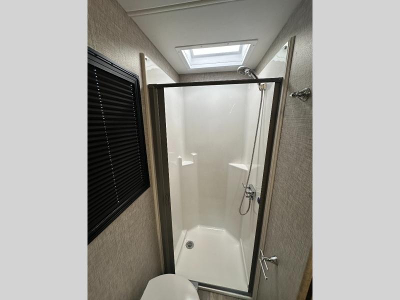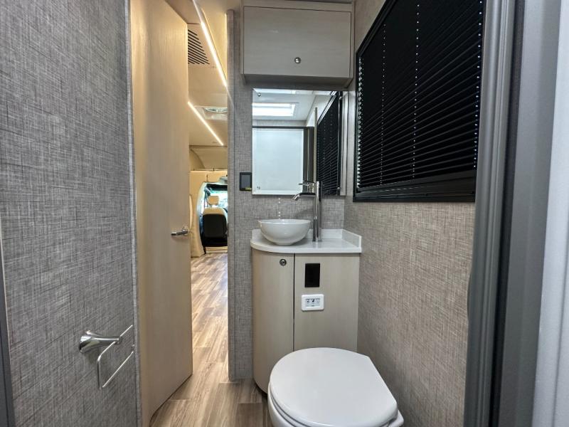 Experience unparalleled freedom and luxury with your favorite person in the most amazing motorhome, perfect to see nature along the highways and wherever the road takes you! You will find the perfect place to rest in the extra comfy king bed, there are nightstands and a spacious wardrobe for keeping all your belongings organized. In front of it, you will enjoy the convenience of the full bathroom, which features a 32” x 36” shower and has everything you need to unwind and relax when taking a bath. Cooking has never been easier thanks to the incredible kitchen, boasting a pantry, refrigerator, microwave, and a U-shape dinette where you can comfortably eat your meals, play board games, or have an entertaining time with your loved ones.