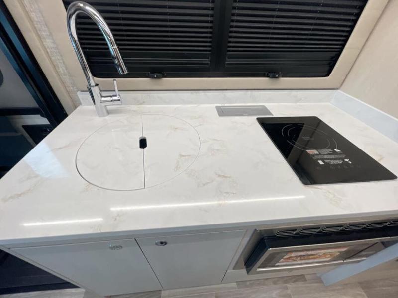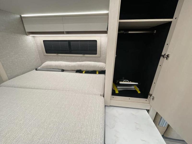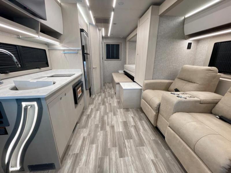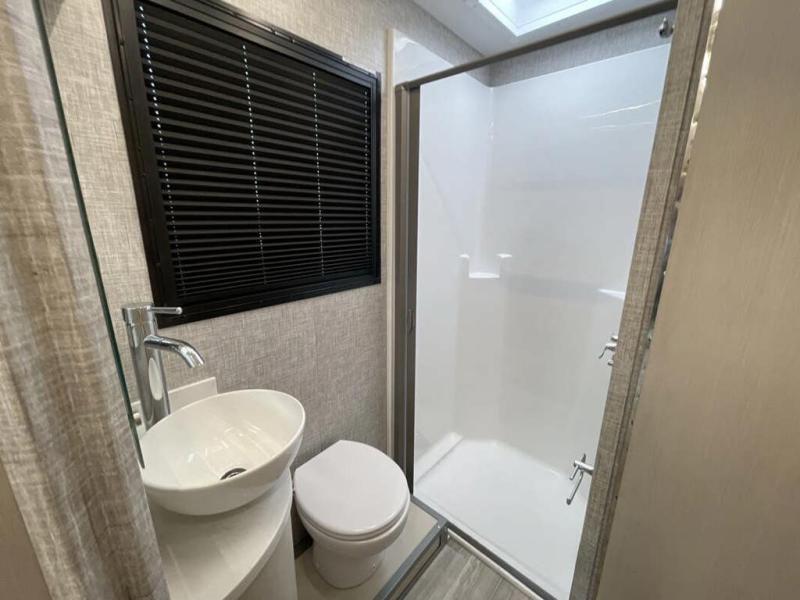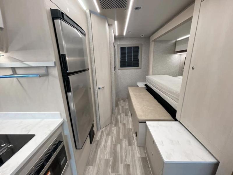 Experience unparalleled freedom and luxury with your favorite person in the most amazing motorhome, perfect to see nature along the highways and wherever the road takes you! You will find the perfect place to rest in the extra comfy king bed, there are nightstands and a spacious wardrobe for keeping all your belongings organized. In front of it, you will enjoy the convenience of the full bathroom, which features a 32” x 36” shower and has everything you need to unwind and relax when taking a bath. Cooking has never been easier thanks to the incredible kitchen, boasting a pantry, refrigerator, microwave, and a U-shape dinette where you can comfortably eat your meals, play board games, or have an entertaining time with your loved ones.