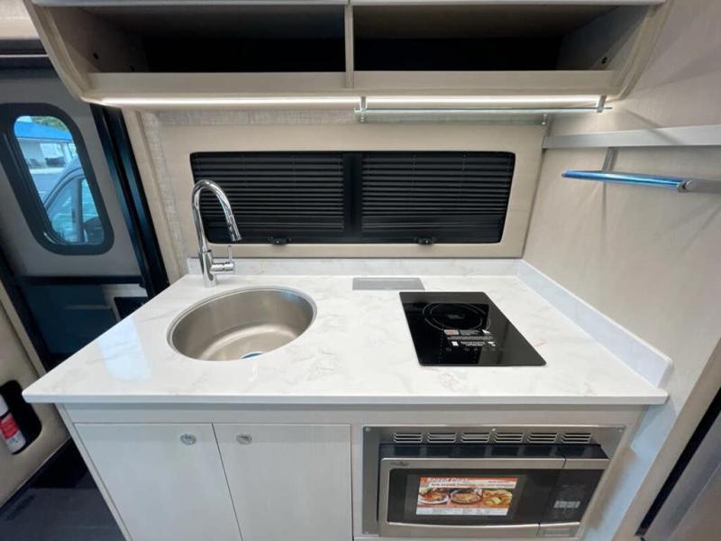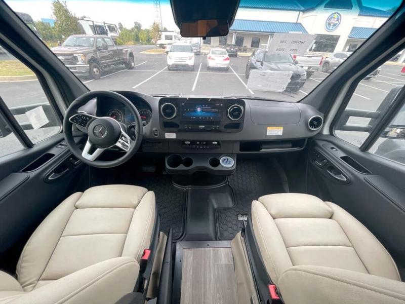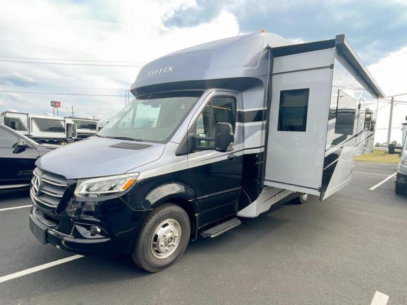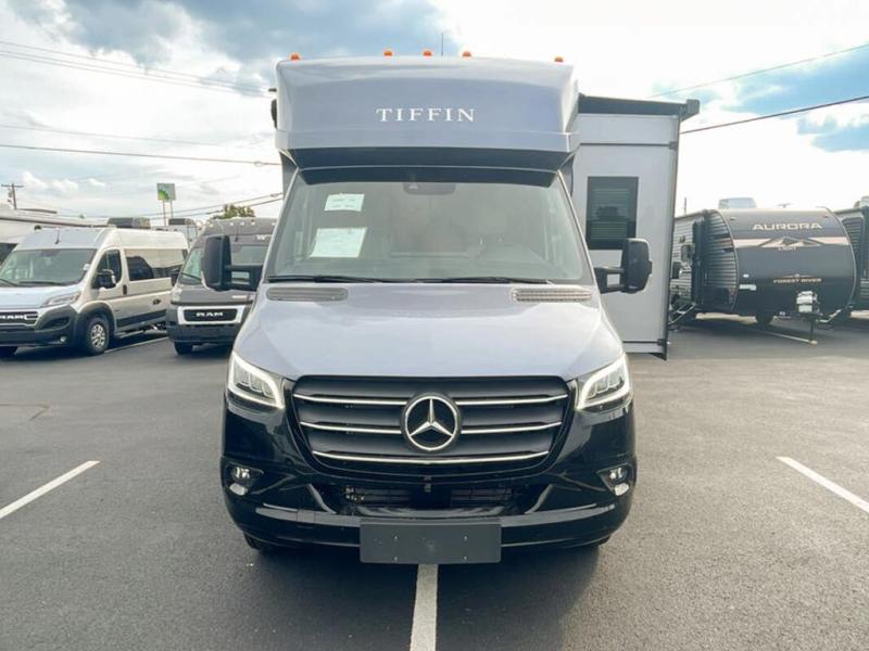 With any Wayfarer Class C diesel coach by Tiffin Motorhomes you will enjoy luxury features both inside and out. There are one-piece molded gel-coat fiberglass front and rear caps plus full-body paint and two layers of clear coat for added protection. The Mercedes-Benz 3500XD dual wheel cutaway chassis provides a strong foundation, and the 2.0L V4 turbo diesel high output 208 HP diesel engine with 332 lb-ft torque will keep you going adventure after adventure! You will love the drive just as much as the destination with adjustable captain's seats that are also heated, intelligent navigation, and a Mercedes-Benz MBUX multimedia system with a 10.25" touchscreen. Wherever you decide to roam, you will be met with interior comforts that include handcrafted overhead cabinetry, solar and privacy shades, solid surface galley countertops and task lighting, and a wardrobe in the bedroom to keep your space tidy.