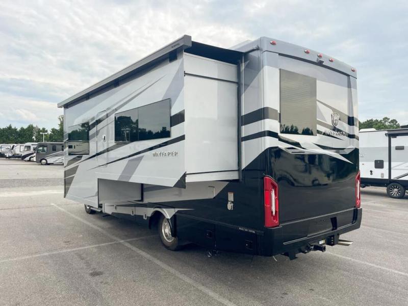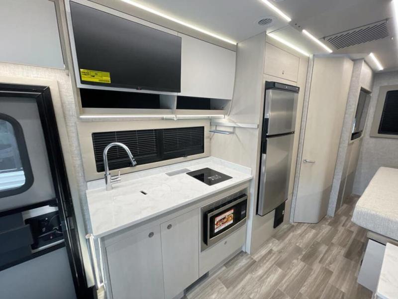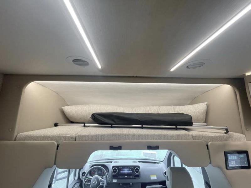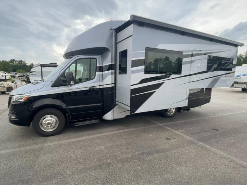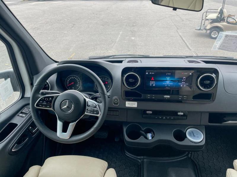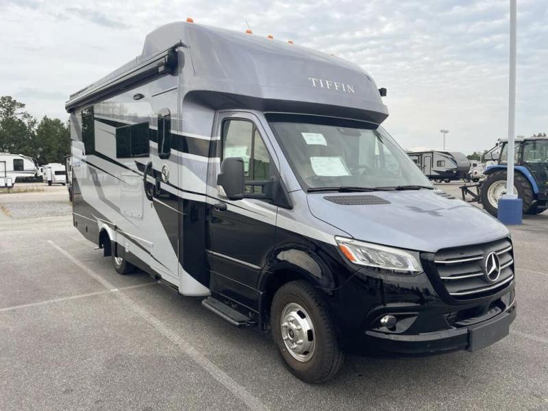 With any Wayfarer Class C diesel coach by Tiffin Motorhomes you will enjoy luxury features both inside and out. There are one-piece molded gel-coat fiberglass front and rear caps plus full-body paint and two layers of clear coat for added protection. The Mercedes-Benz 3500XD dual wheel cutaway chassis provides a strong foundation, and the 2.0L V4 turbo diesel high output 208 HP diesel engine with 332 lb-ft torque will keep you going adventure after adventure! You will love the drive just as much as the destination with adjustable captain's seats that are also heated, intelligent navigation, and a Mercedes-Benz MBUX multimedia system with a 10.25" touchscreen. Wherever you decide to roam, you will be met with interior comforts that include handcrafted overhead cabinetry, solar and privacy shades, solid surface galley countertops and task lighting, and a wardrobe in the bedroom to keep your space tidy.