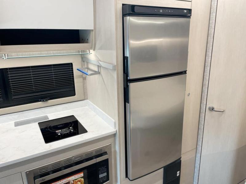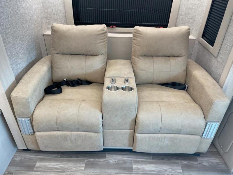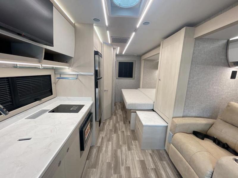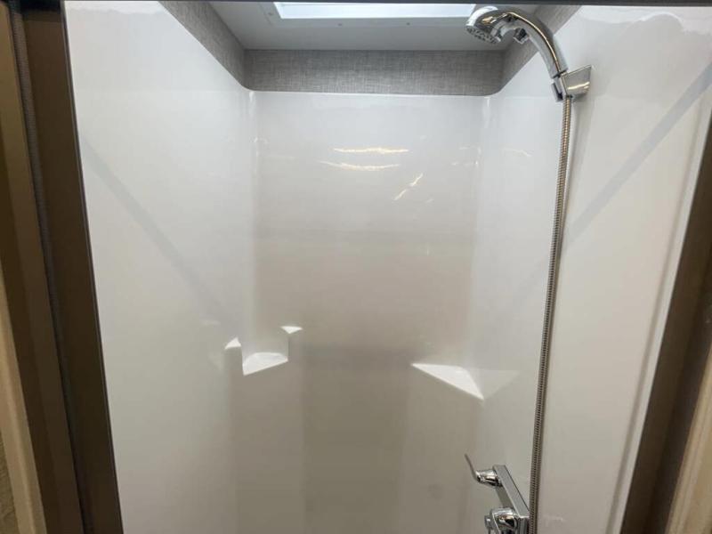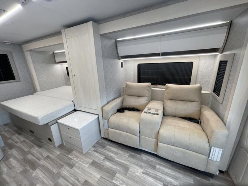 Experience unparalleled freedom and luxury with your favorite person in the most amazing motorhome, perfect to see nature along the highways and wherever the road takes you! You will find the perfect place to rest in the extra comfy king bed, there are nightstands and a spacious wardrobe for keeping all your belongings organized. In front of it, you will enjoy the convenience of the full bathroom, which features a 32” x 36” shower and has everything you need to unwind and relax when taking a bath. Cooking has never been easier thanks to the incredible kitchen, boasting a pantry, refrigerator, microwave, and a U-shape dinette where you can comfortably eat your meals, play board games, or have an entertaining time with your loved ones.