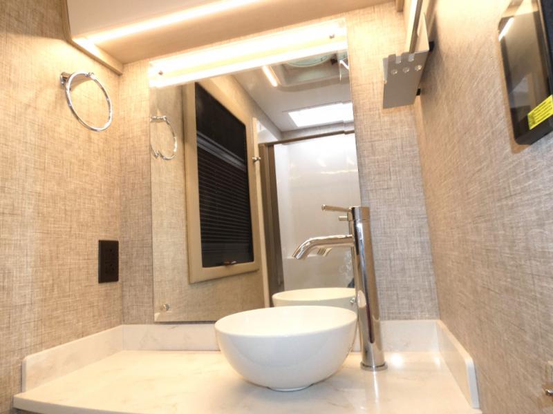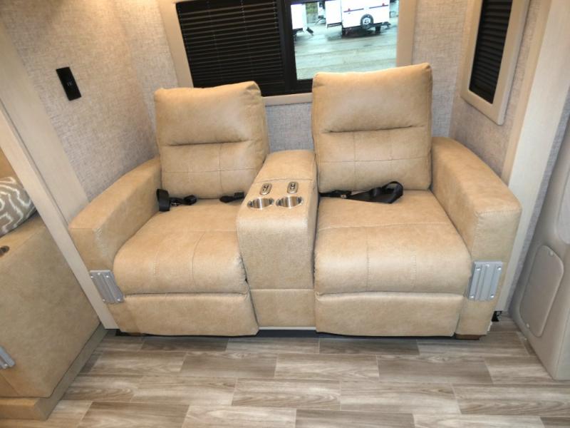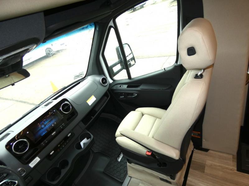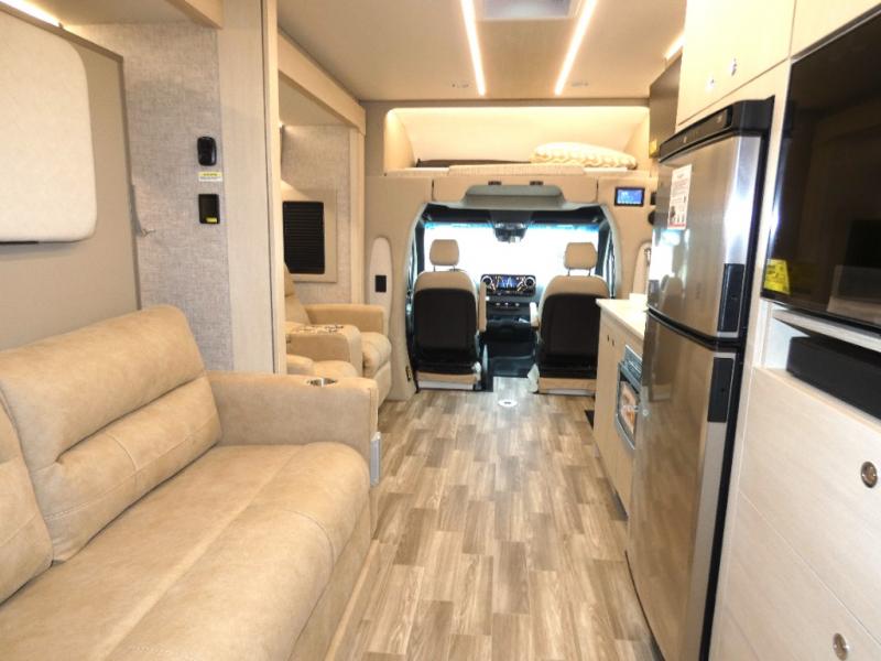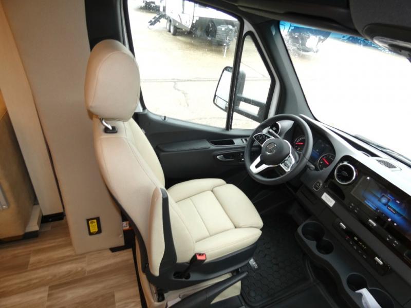 With any Wayfarer Class C diesel coach by Tiffin Motorhomes you will enjoy luxury features both inside and out. There are one-piece molded gel-coat fiberglass front and rear caps plus full-body paint and two layers of clear coat for added protection. The Mercedes-Benz 3500XD dual wheel cutaway chassis provides a strong foundation, and the 2.0L V4 turbo diesel high output 208 HP diesel engine with 332 lb-ft torque will keep you going adventure after adventure! You will love the drive just as much as the destination with adjustable captain's seats that are also heated, intelligent navigation, and a Mercedes-Benz MBUX multimedia system with a 10.25" touchscreen. Wherever you decide to roam, you will be met with interior comforts that include high pressure laminate cabinets, solar and privacy shades, solid surface galley countertops and task lighting, and a wardrobe in the bedroom to keep your space tidy.