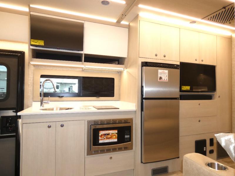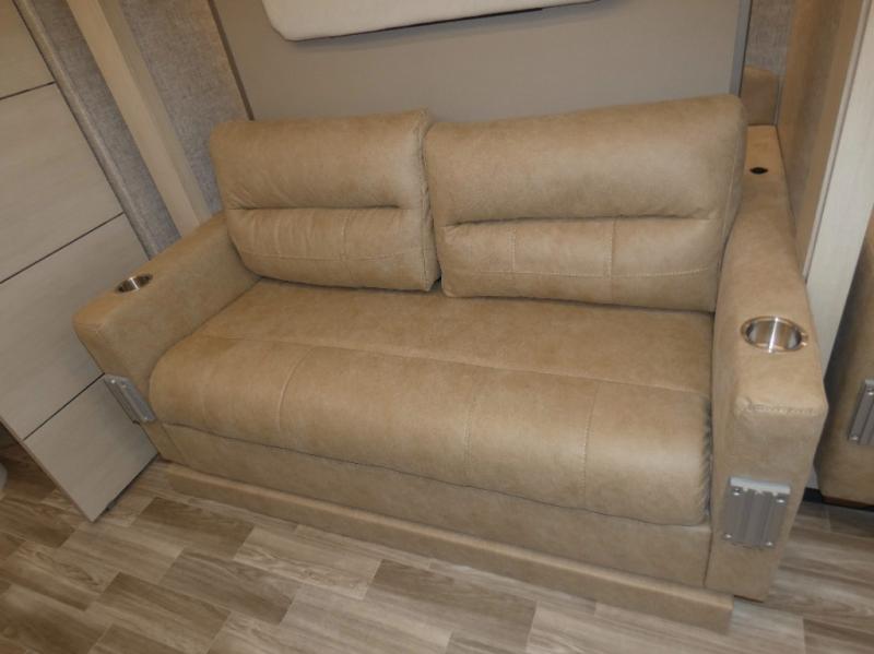 Travel with your favorite person, family, or some friends to see nature along the highways, up close and where ever the road takes you! You will find sleeping space for five with the bunk over the cab and the versatile queen-size Murphy bed and sofa combo! The rear full bathroom gives you privacy, and the galley kitchen lets you make meals on the two burner cooktop and convection microwave oven.