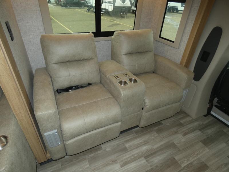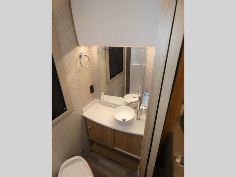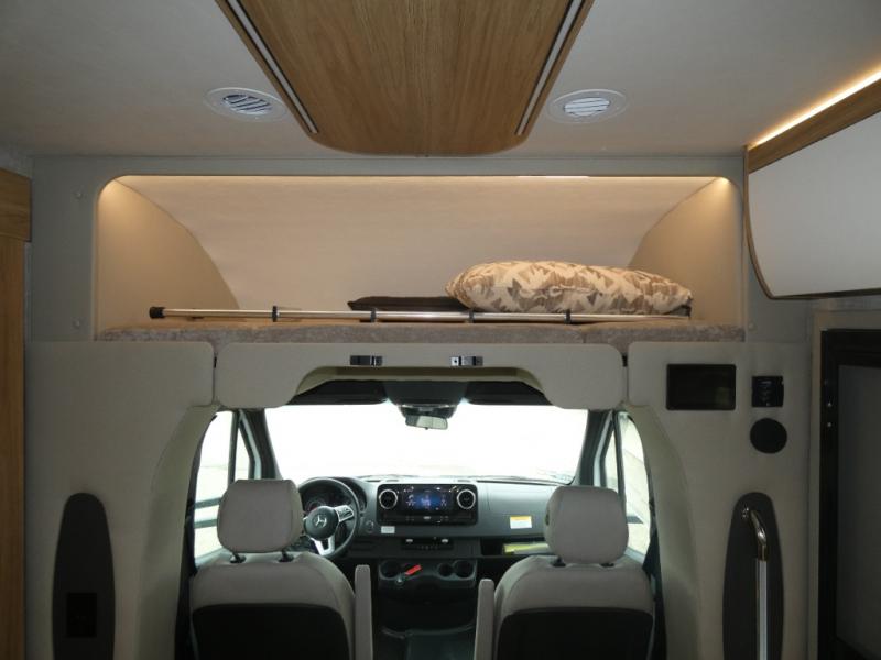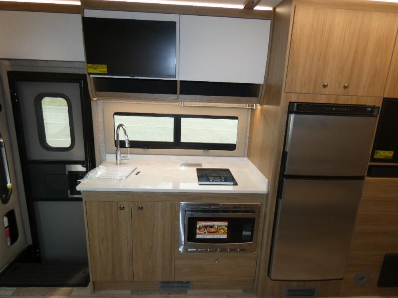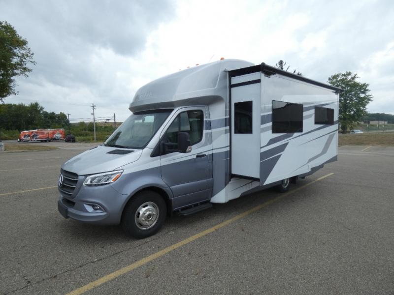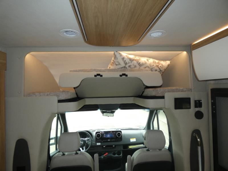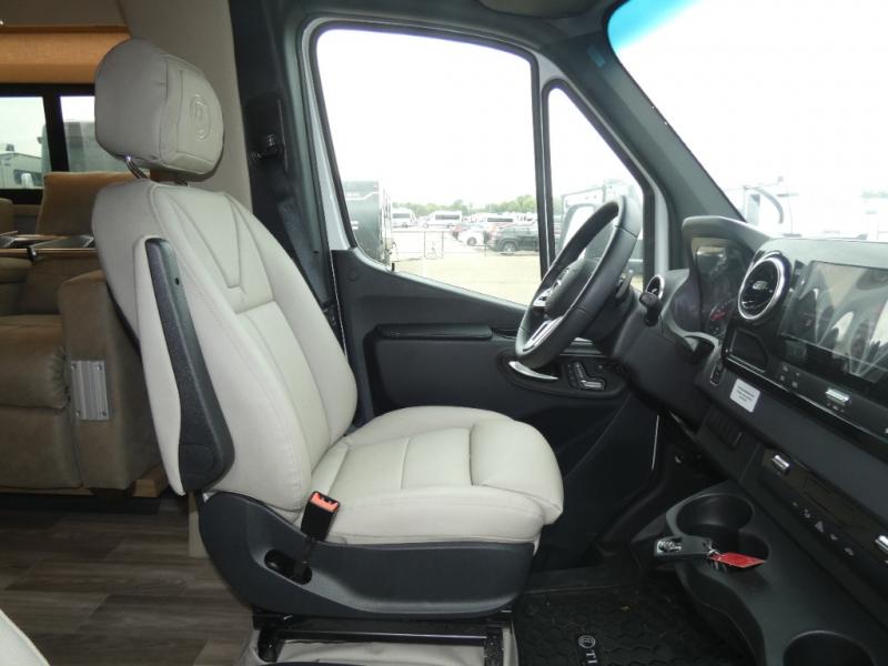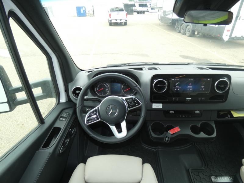 With any Wayfarer Class C diesel coach by Tiffin Motorhomes you will enjoy luxury features both inside and out. There are one-piece molded gel-coat fiberglass front and rear caps plus full-body paint and two layers of clear coat for added protection. The Mercedes-Benz 3500XD dual wheel cutaway chassis provides a strong foundation, and the 2.0L V4 turbo diesel high output 208 HP diesel engine with 332 lb-ft torque will keep you going adventure after adventure! You will love the drive just as much as the destination with adjustable captain's seats that are also heated, intelligent navigation, and a Mercedes-Benz MBUX multimedia system with a 10.25" touchscreen. Wherever you decide to roam, you will be met with interior comforts that include handcrafted overhead cabinetry, solar and privacy shades, solid surface galley countertops and task lighting, and a wardrobe in the bedroom to keep your space tidy.