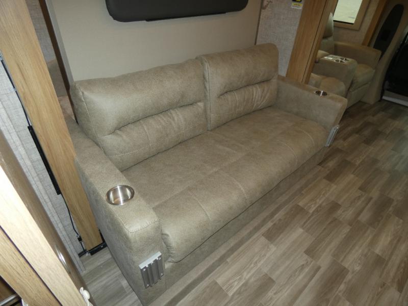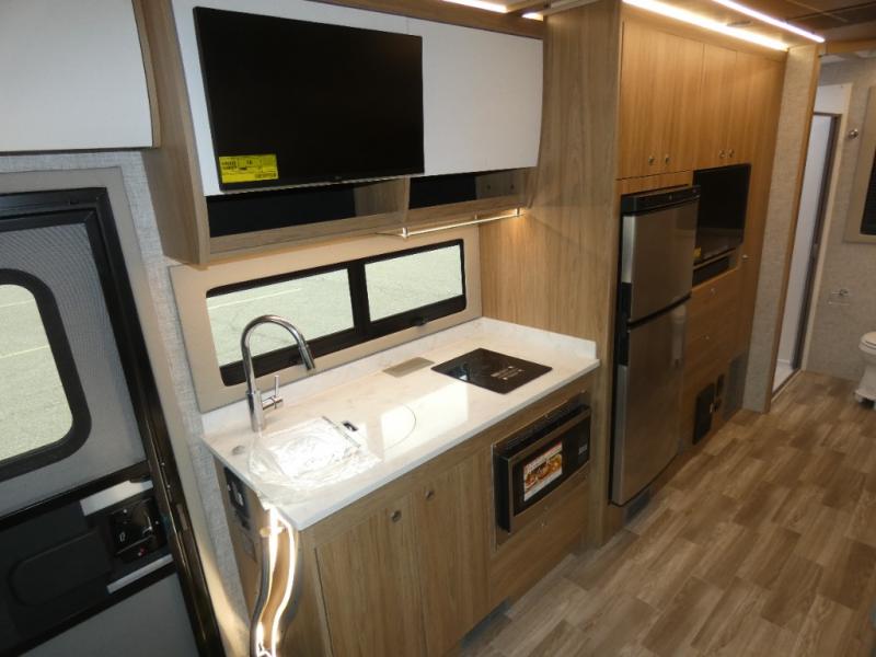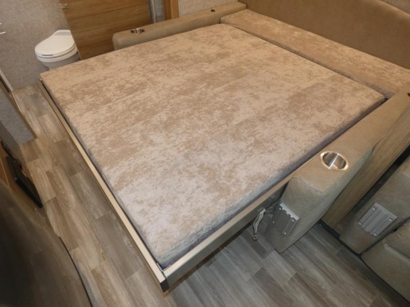 Travel with your favorite person, family, or some friends to see nature along the highways, up close and where ever the road takes you! You will find sleeping space for five with the bunk over the cab, the booth dinette-sleeper, and the versatile queen-size Murphy bed and sofa combo! The rear full bathroom gives you privacy, and the galley kitchen lets you make meals on the two burner cooktop and convection microwave oven.