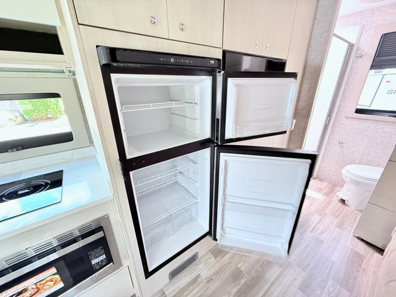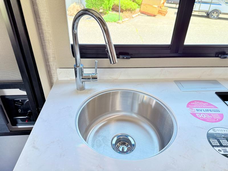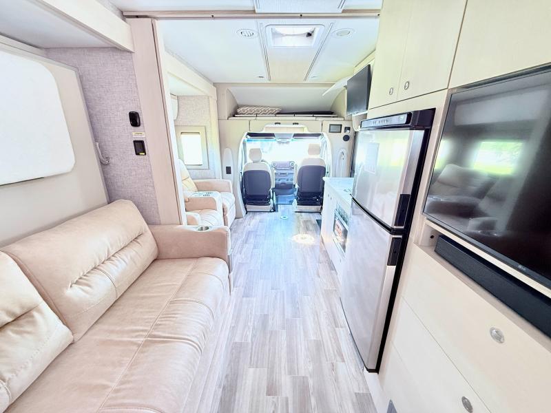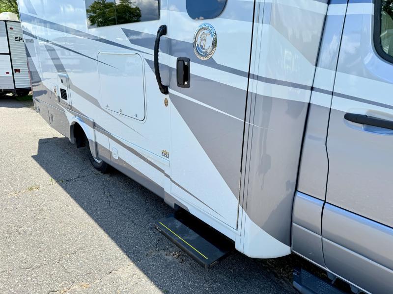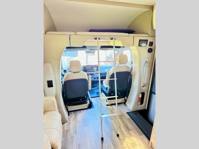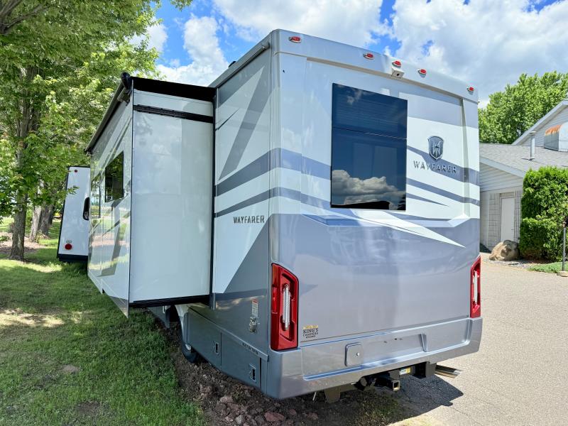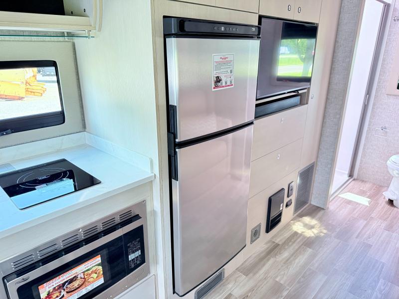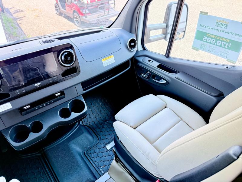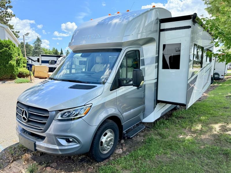 With any Wayfarer Class C diesel coach by Tiffin Motorhomes you will enjoy luxury features both inside and out. There are one-piece molded gel-coat fiberglass front and rear caps plus full-body paint and two layers of clear coat for added protection. The Mercedes-Benz 3500XD dual wheel cutaway chassis provides a strong foundation, and the 2.0L V4 turbo diesel high output 208 HP diesel engine with 332 lb-ft torque will keep you going adventure after adventure! You will love the drive just as much as the destination with adjustable captain's seats that are also heated, intelligent navigation, and a Mercedes-Benz MBUX multimedia system with a 10.25" touchscreen. Wherever you decide to roam, you will be met with interior comforts that include handcrafted overhead cabinetry, solar and privacy shades, solid surface galley countertops and task lighting, and a wardrobe in the bedroom to keep your space tidy.