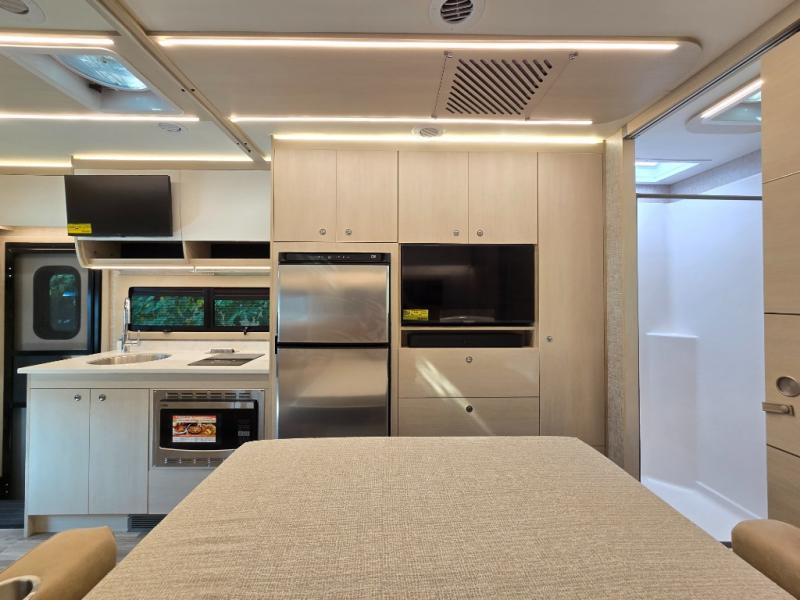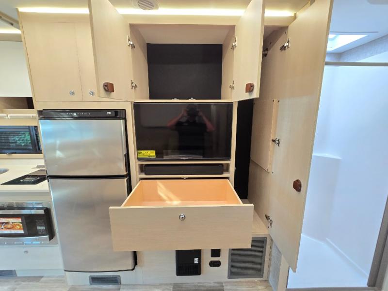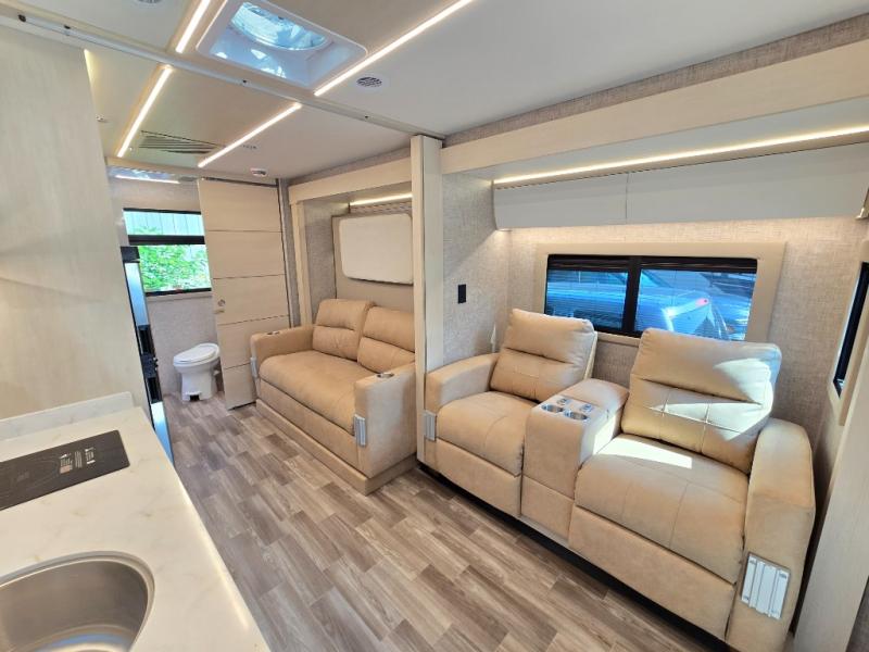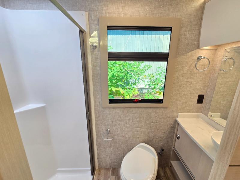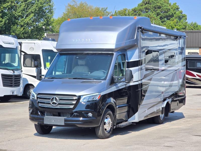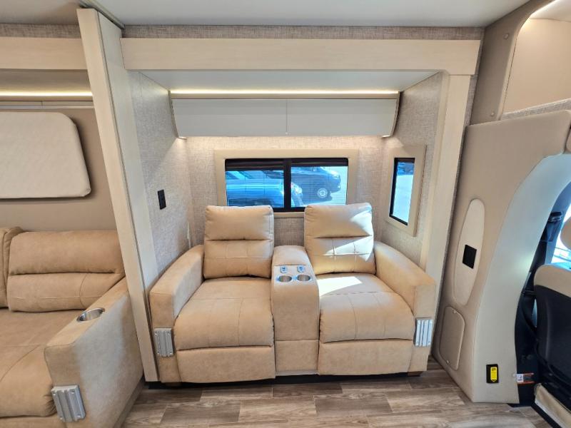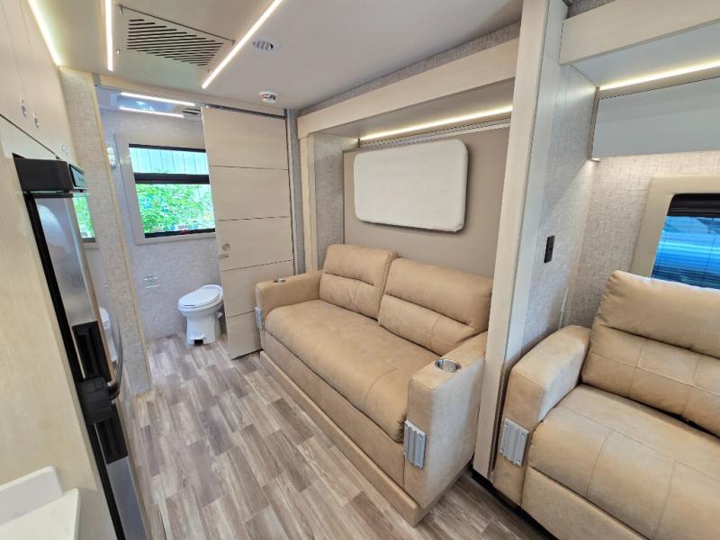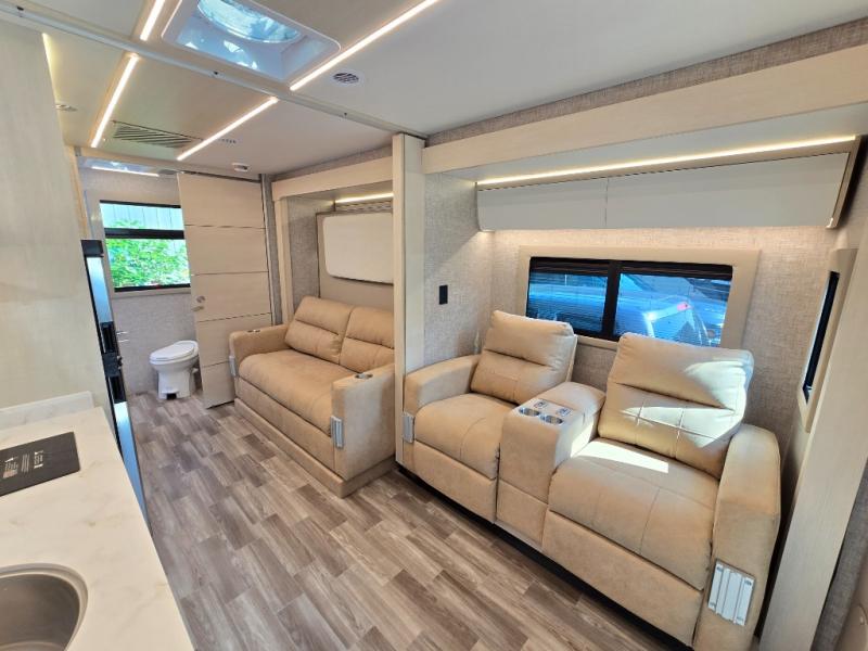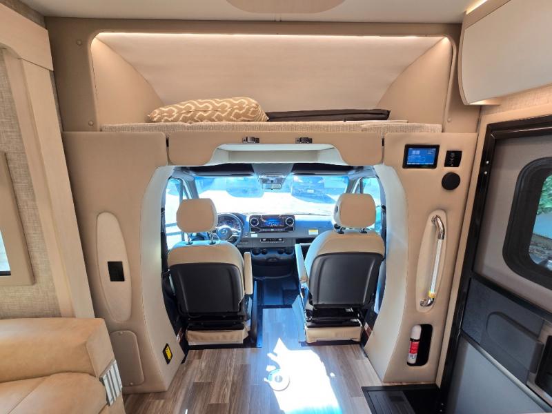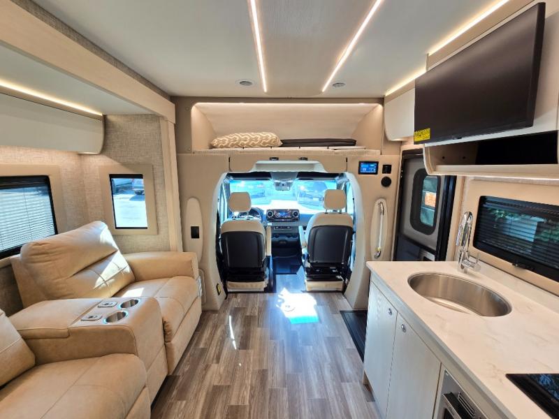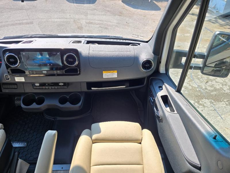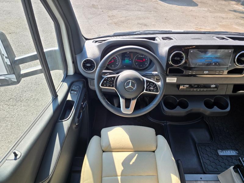 With any Wayfarer Class C diesel coach by Tiffin Motorhomes you will enjoy luxury features both inside and out. There are one-piece molded gel-coat fiberglass front and rear caps plus full-body paint and two layers of clear coat for added protection. The Mercedes-Benz 3500XD dual wheel cutaway chassis provides a strong foundation, and the 2.0L V4 turbo diesel high output 208 HP diesel engine with 332 lb-ft torque will keep you going adventure after adventure! You will love the drive just as much as the destination with adjustable captain's seats that are also heated, intelligent navigation, and a Mercedes-Benz MBUX multimedia system with a 10.25" touchscreen. Wherever you decide to roam, you will be met with interior comforts that include handcrafted overhead cabinetry, solar and privacy shades, solid surface galley countertops and task lighting, and a wardrobe in the bedroom to keep your space tidy.