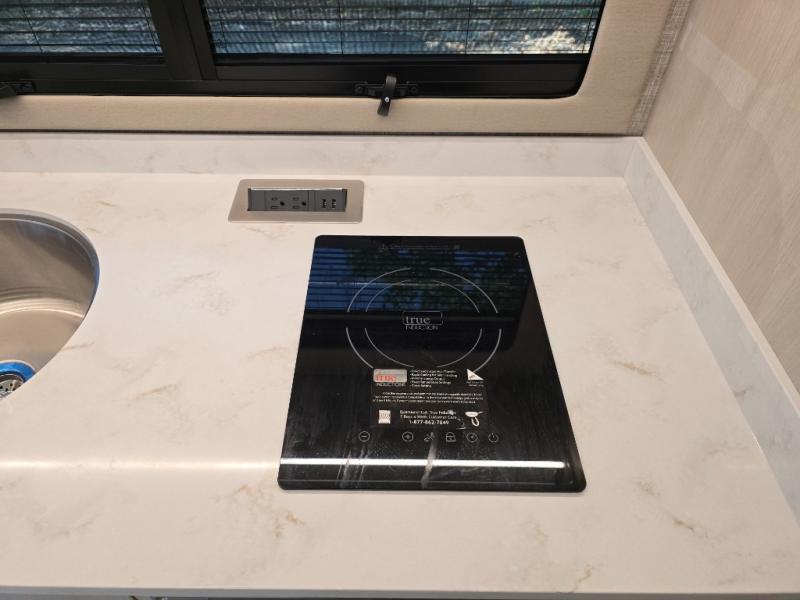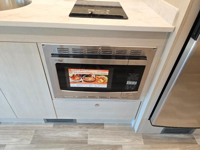 Travel with your favorite person, family, or some friends to see nature along the highways, up close and where ever the road takes you! You will find sleeping space for five with the bunk over the cab, the booth dinette-sleeper, and the versatile queen-size Murphy bed and sofa combo! The rear full bathroom gives you privacy, and the galley kitchen lets you make meals on the two burner cooktop and convection microwave oven. You might like to add a few options to customize your coach such as optional theater seating, or a tri-fold sofa in place of the dinette, a central vacuum system, an overhead entertainment center in place of the bunk, and/or an exterior TV to enjoy under the awning.