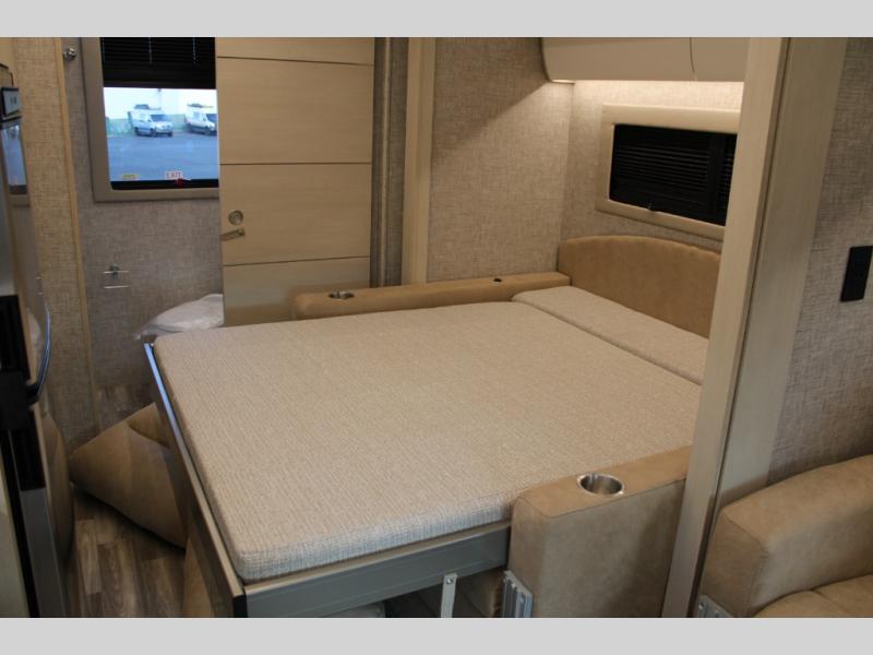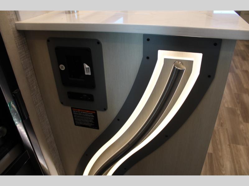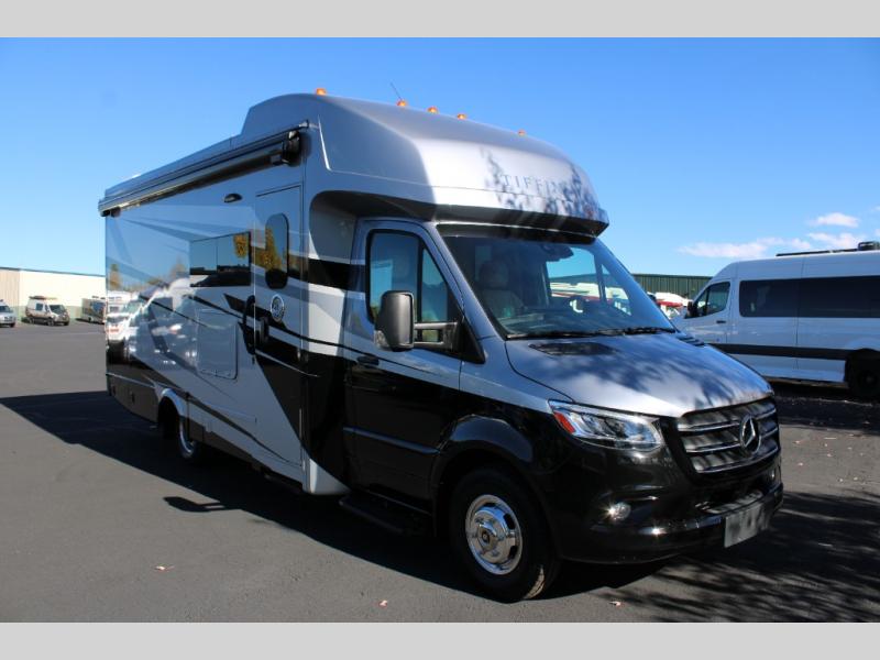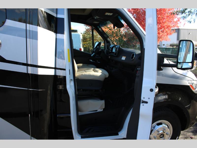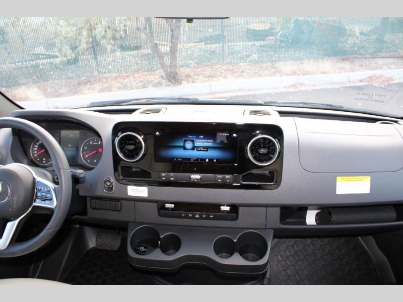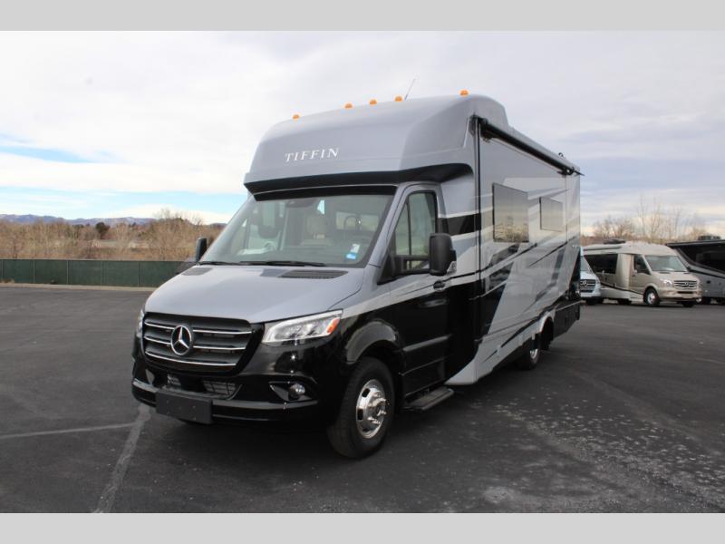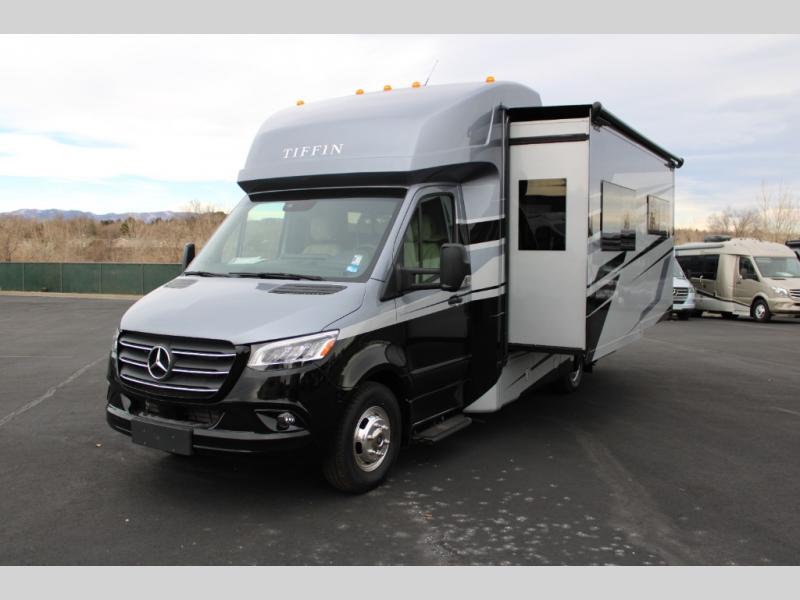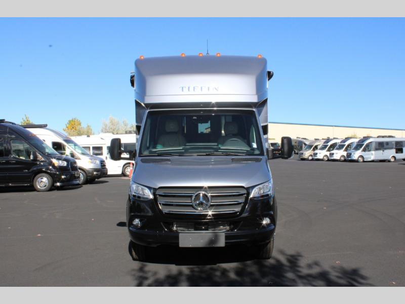 With any Wayfarer Class C diesel coach by Tiffin Motorhomes you will enjoy luxury features both inside and out. There are one-piece molded gel-coat fiberglass front and rear caps plus full-body paint and two layers of clear coat for added protection. The Mercedes-Benz 3500XD dual wheel cutaway chassis provides a strong foundation, and the 2.0L V4 turbo diesel high output 208 HP diesel engine with 332 lb-ft torque will keep you going adventure after adventure! You will love the drive just as much as the destination with adjustable captain's seats that are also heated, intelligent navigation, and a Mercedes-Benz MBUX multimedia system with a 10.25" touchscreen. Wherever you decide to roam, you will be met with interior comforts that include handcrafted overhead cabinetry, solar and privacy shades, solid surface galley countertops and task lighting, and a wardrobe in the bedroom to keep your space tidy.