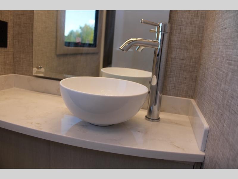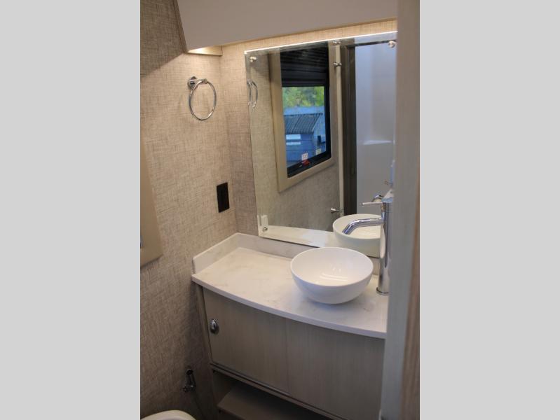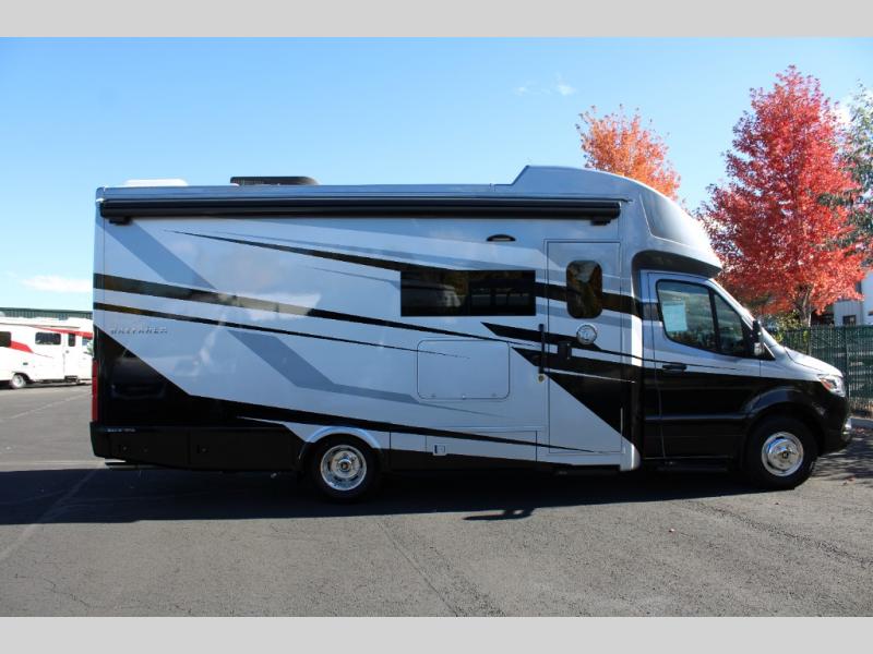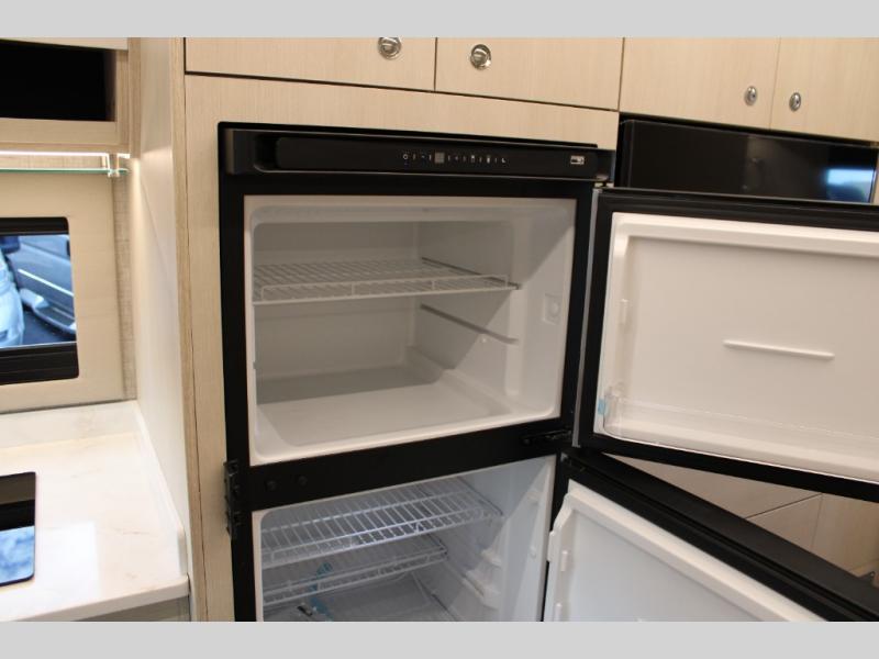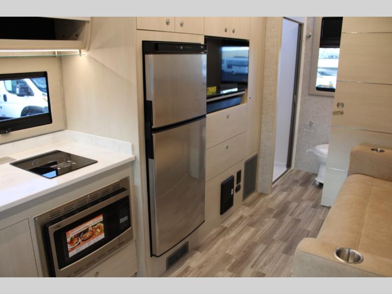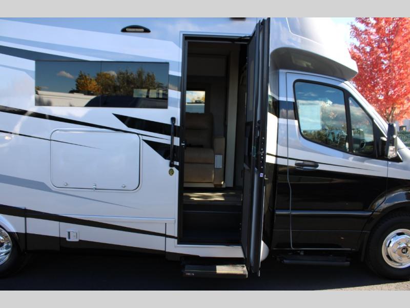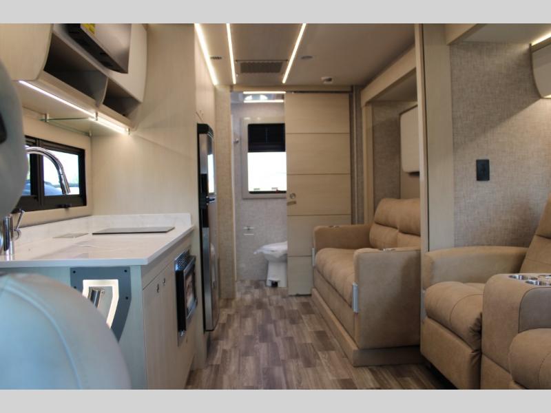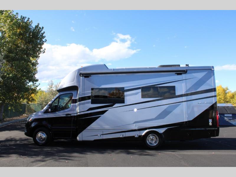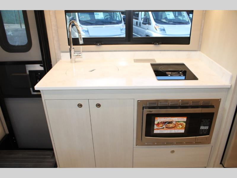With any Wayfarer Class C diesel coach by Tiffin Motorhomes you will enjoy luxury features both inside and out. There are one-piece molded gel-coat fiberglass front and rear caps plus full-body paint and two layers of clear coat for added protection. The Mercedes-Benz 3500XD dual wheel cutaway chassis provides a strong foundation, and the 2.0L V4 turbo diesel high output 208 HP diesel engine with 332 lb-ft torque will keep you going adventure after adventure! You will love the drive just as much as the destination with adjustable captain's seats that are also heated, intelligent navigation, and a Mercedes-Benz MBUX multimedia system with a 10.25" touchscreen. Wherever you decide to roam, you will be met with interior comforts that include handcrafted overhead cabinetry, solar and privacy shades, solid surface galley countertops and task lighting, and a wardrobe in the bedroom to keep your space tidy.