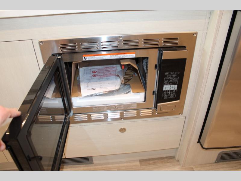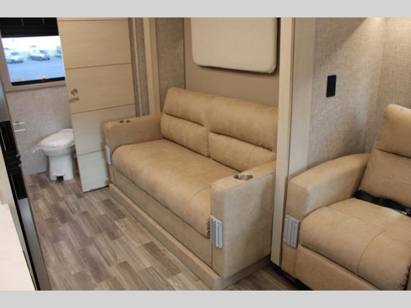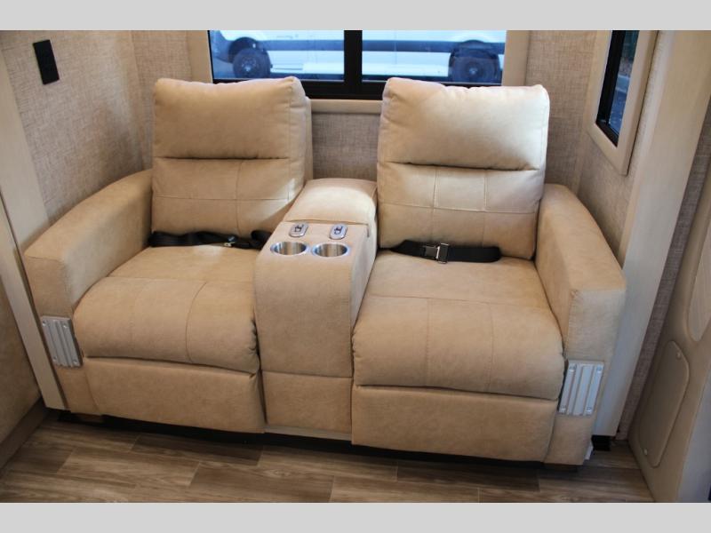 Travel with your favorite person, family, or some friends to see nature along the highways, up close and where ever the road takes you! You will find sleeping space for five with the bunk over the cab, the booth dinette-sleeper, and the versatile queen-size Murphy bed and sofa combo! The rear full bathroom gives you privacy, and the galley kitchen lets you make meals on the two burner cooktop and convection microwave oven. You might like to add a few options to customize your coach such as optional theater seating, or a tri-fold sofa in place of the dinette, a central vacuum system, an overhead entertainment center in place of the bunk, and/or an exterior TV to enjoy under the awning.