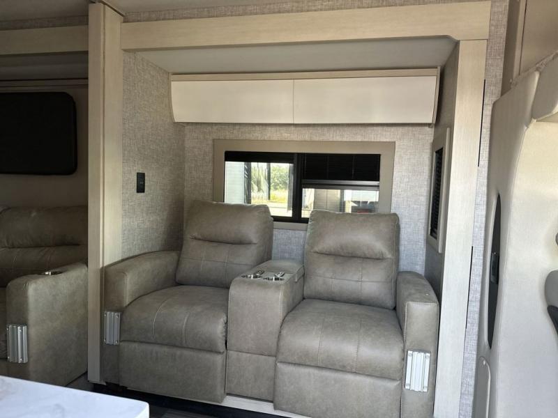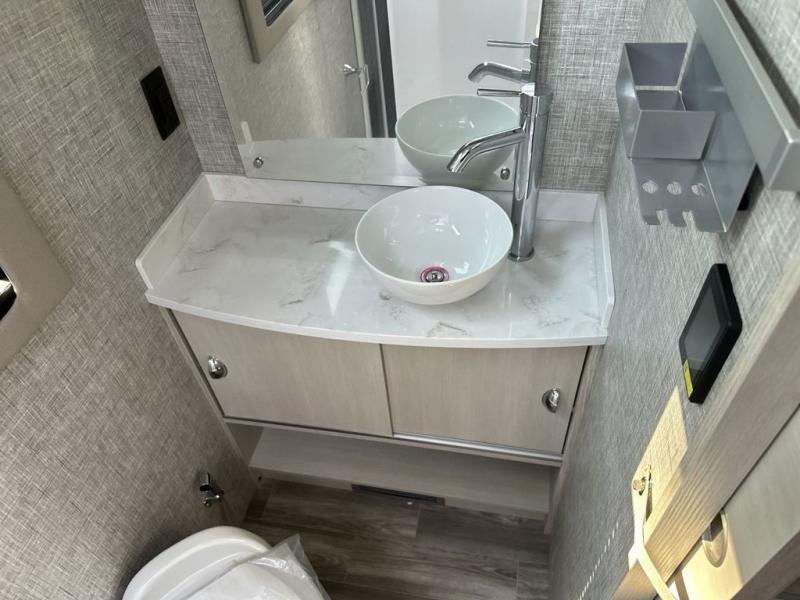 With any Wayfarer Class C diesel coach by Tiffin Motorhomes you will enjoy luxury features both inside and out. There are one-piece molded gel-coat fiberglass front and rear caps plus full-body paint and two layers of clear coat for added protection. The Mercedes-Benz 3500XD dual wheel cutaway chassis provides a strong foundation, and the 2.0L V4 turbo diesel high output 208 HP diesel engine with 332 lb-ft torque will keep you going adventure after adventure! You will love the drive just as much as the destination with adjustable captain's seats that are also heated, intelligent navigation, and a Mercedes-Benz MBUX multimedia system with a 10.25" touchscreen. Wherever you decide to roam, you will be met with interior comforts that include handcrafted overhead cabinetry, solar and privacy shades, solid surface galley countertops and task lighting, and a wardrobe in the bedroom to keep your space tidy.