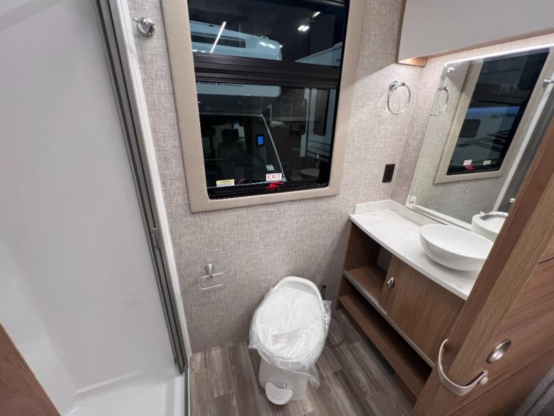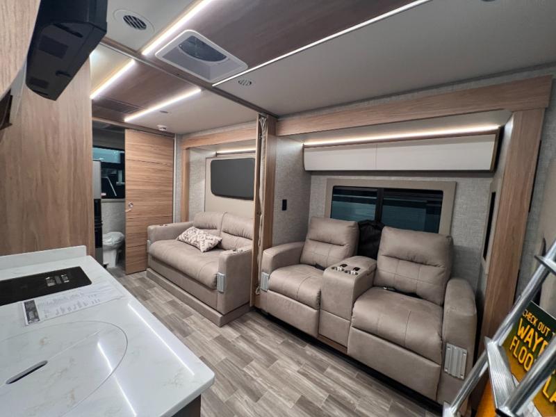 With any Wayfarer Class C diesel coach by Tiffin Motorhomes you will enjoy luxury features both inside and out. There are one-piece molded gel-coat fiberglass front and rear caps plus full-body paint and two layers of clear coat for added protection. The Mercedes-Benz 3500XD dual wheel cutaway chassis provides a strong foundation, and the 2.0L V4 turbo diesel high output 208 HP diesel engine with 332 lb-ft torque will keep you going adventure after adventure! You will love the drive just as much as the destination with adjustable captain's seats that are also heated, intelligent navigation, and a Mercedes-Benz MBUX multimedia system with a 10.25" touchscreen. Wherever you decide to roam, you will be met with interior comforts that include handcrafted overhead cabinetry, solar and privacy shades, solid surface galley countertops and task lighting, and a wardrobe in the bedroom to keep your space tidy.