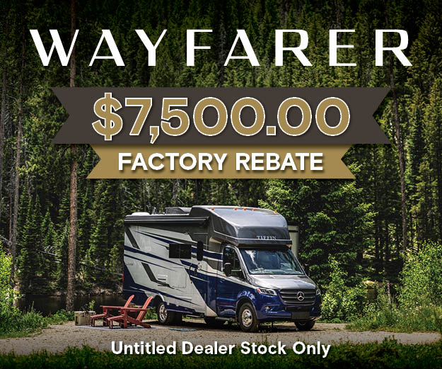 With any Wayfarer Class C diesel coach by Tiffin Motorhomes you will enjoy luxury features both inside and out. There are one-piece molded gel-coat fiberglass front and rear caps plus full-body paint and two layers of clear coat for added protection. The Mercedes-Benz 3500XD dual wheel cutaway chassis provides a strong foundation, and the 2.0L V4 turbo diesel high output 208 HP diesel engine with 332 lb-ft torque will keep you going adventure after adventure! You will love the drive just as much as the destination with adjustable captain's seats that are also heated, intelligent navigation, and a Mercedes-Benz MBUX multimedia system with a 10.25" touchscreen. Wherever you decide to roam, you will be met with interior comforts that include handcrafted overhead cabinetry, solar and privacy shades, solid surface galley countertops and task lighting, and a wardrobe in the bedroom to keep your space tidy.