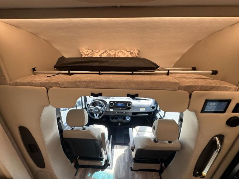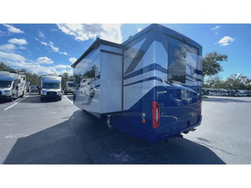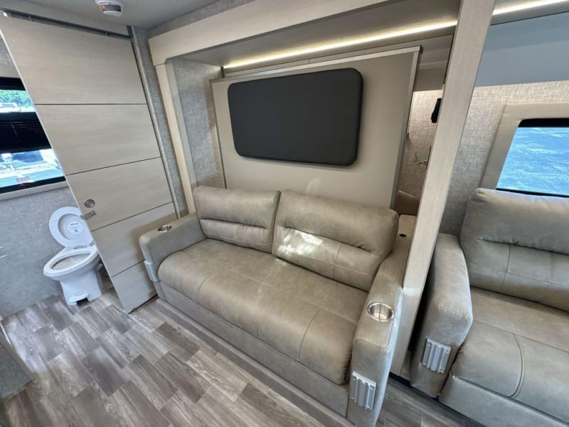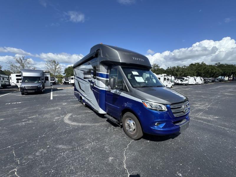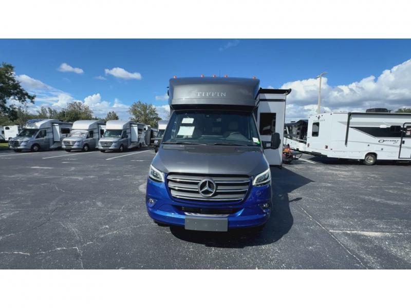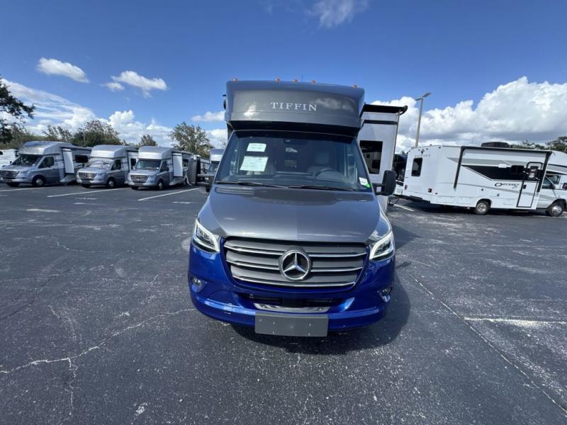 With any Wayfarer Class C diesel coach by Tiffin Motorhomes you will enjoy luxury features both inside and out. There are one-piece molded gel-coat fiberglass front and rear caps plus full-body paint and two layers of clear coat for added protection. The Mercedes-Benz 3500XD dual wheel cutaway chassis provides a strong foundation, and the 2.0L V4 turbo diesel high output 208 HP diesel engine with 332 lb-ft torque will keep you going adventure after adventure! You will love the drive just as much as the destination with adjustable captain's seats that are also heated, intelligent navigation, and a Mercedes-Benz MBUX multimedia system with a 10.25" touchscreen. Wherever you decide to roam, you will be met with interior comforts that include handcrafted overhead cabinetry, solar and privacy shades, solid surface galley countertops and task lighting, and a wardrobe in the bedroom to keep your space tidy.