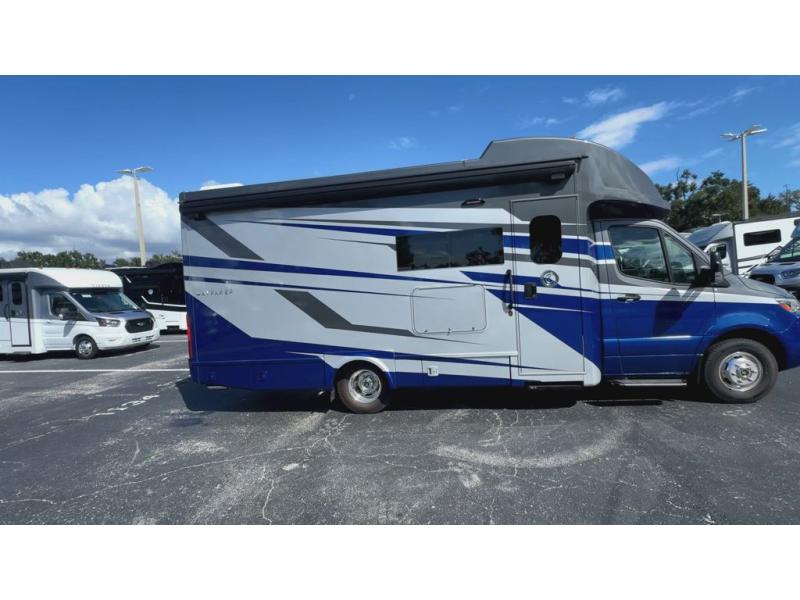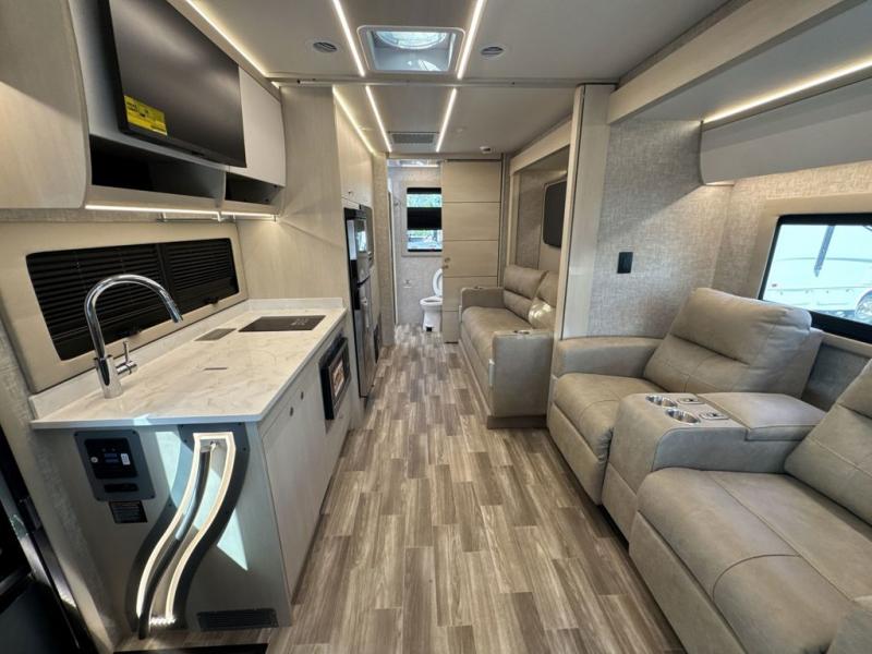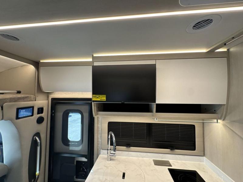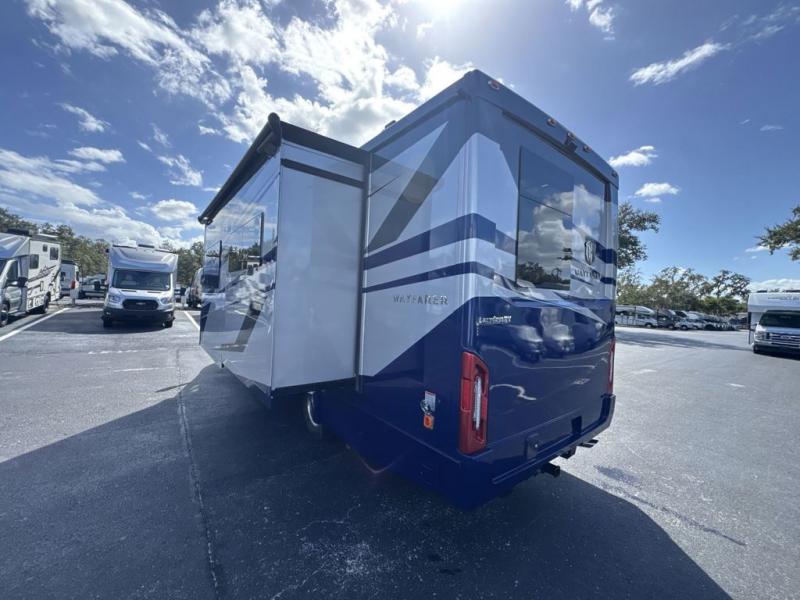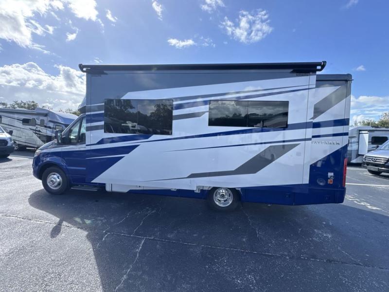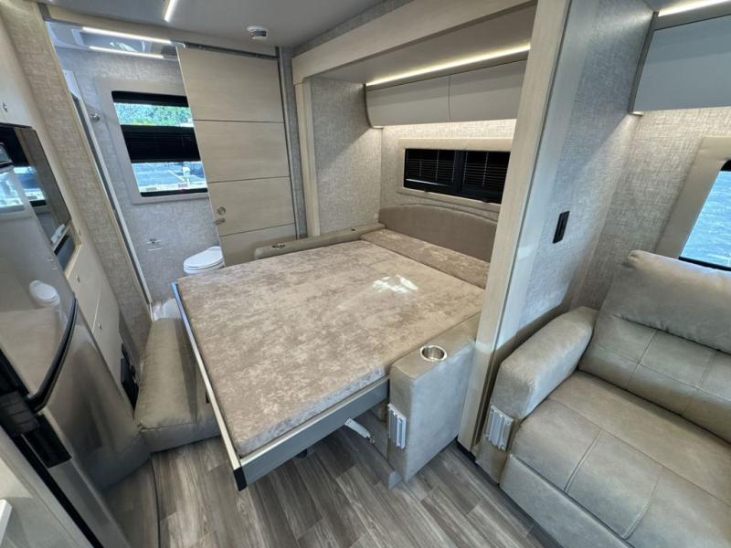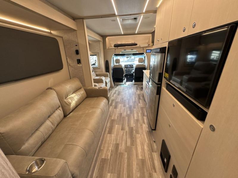 With any Wayfarer Class C diesel coach by Tiffin Motorhomes you will enjoy luxury features both inside and out. There are one-piece molded gel-coat fiberglass front and rear caps plus full-body paint and two layers of clear coat for added protection. The Mercedes-Benz 3500XD dual wheel cutaway chassis provides a strong foundation, and the 2.0L V4 turbo diesel high output 208 HP diesel engine with 332 lb-ft torque will keep you going adventure after adventure! You will love the drive just as much as the destination with adjustable captain's seats that are also heated, intelligent navigation, and a Mercedes-Benz MBUX multimedia system with a 10.25" touchscreen. Wherever you decide to roam, you will be met with interior comforts that include handcrafted overhead cabinetry, solar and privacy shades, solid surface galley countertops and task lighting, and a wardrobe in the bedroom to keep your space tidy.