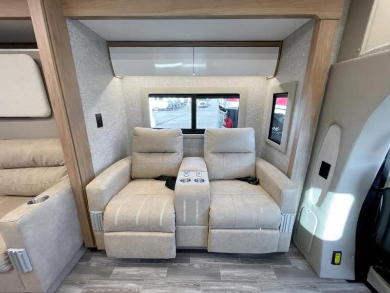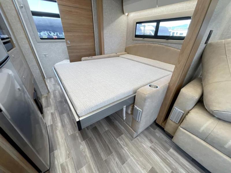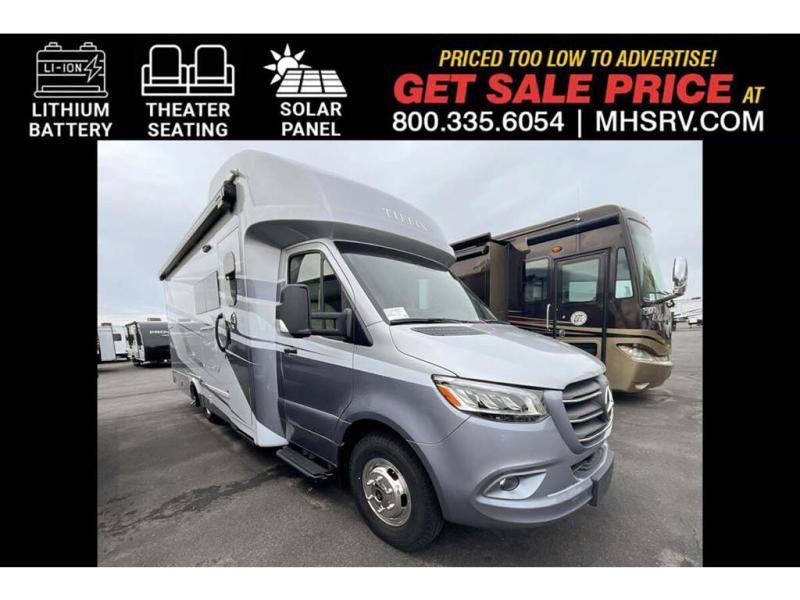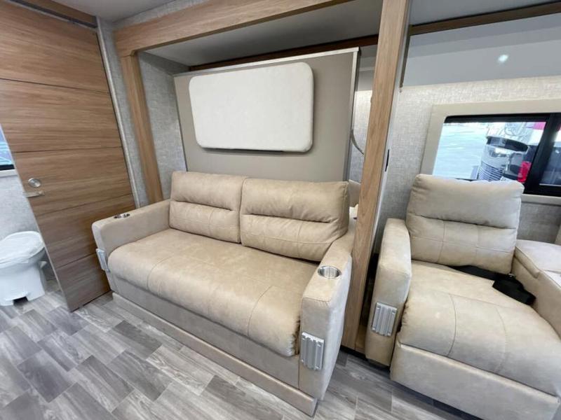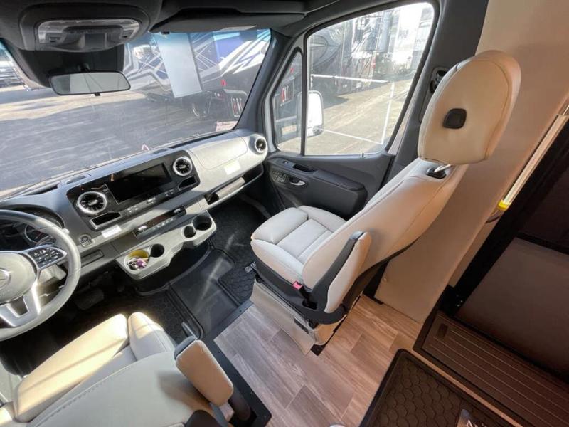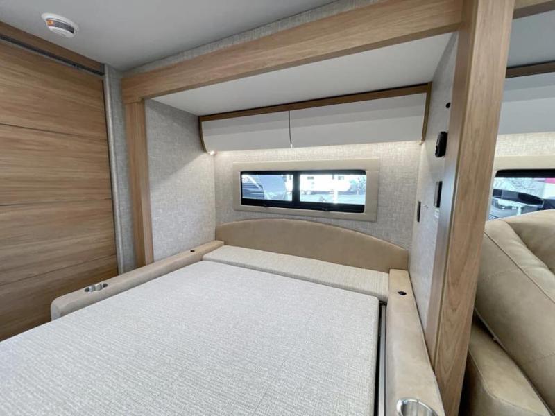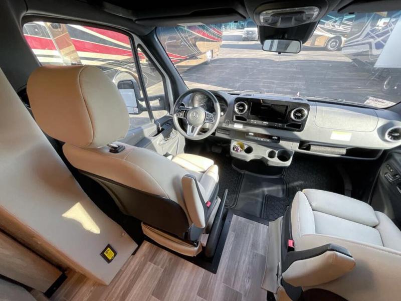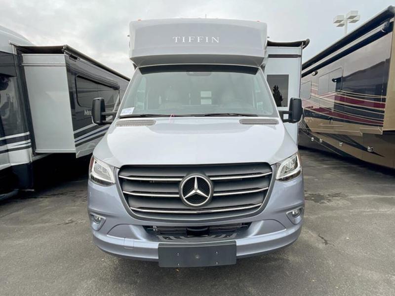 With any Wayfarer Class C diesel coach by Tiffin Motorhomes you will enjoy luxury features both inside and out. There are one-piece molded gel-coat fiberglass front and rear caps plus full-body paint and two layers of clear coat for added protection. The Mercedes-Benz 3500XD dual wheel cutaway chassis provides a strong foundation, and the 2.0L V4 turbo diesel high output 208 HP diesel engine with 332 lb-ft torque will keep you going adventure after adventure! You will love the drive just as much as the destination with adjustable captain's seats that are also heated, intelligent navigation, and a Mercedes-Benz MBUX multimedia system with a 10.25" touchscreen. Wherever you decide to roam, you will be met with interior comforts that include handcrafted overhead cabinetry, solar and privacy shades, solid surface galley countertops and task lighting, and a wardrobe in the bedroom to keep your space tidy.