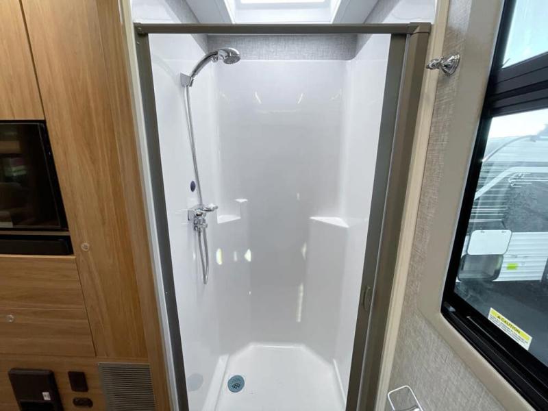 Travel with your favorite person, family, or some friends to see nature along the highways, up close and where ever the road takes you! You will find sleeping space for five with the bunk over the cab, the booth dinette-sleeper, and the versatile queen-size Murphy bed and sofa combo! The rear full bathroom gives you privacy, and the galley kitchen lets you make meals on the two burner cooktop and convection microwave oven. You might like to add a few options to customize your coach such as optional theater seating, or a tri-fold sofa in place of the dinette, a central vacuum system, an overhead entertainment center in place of the bunk, and/or an exterior TV to enjoy under the awning.