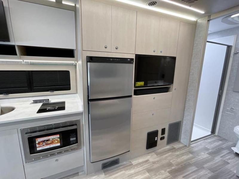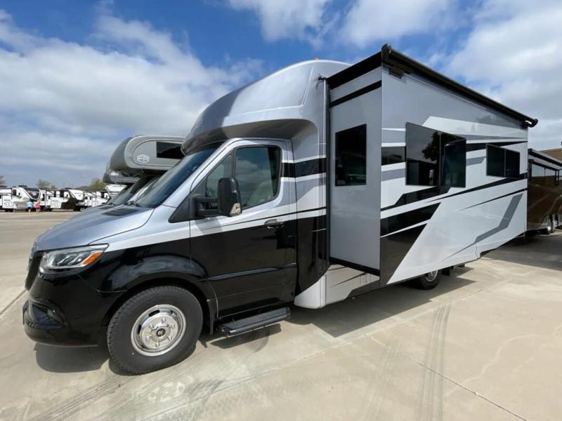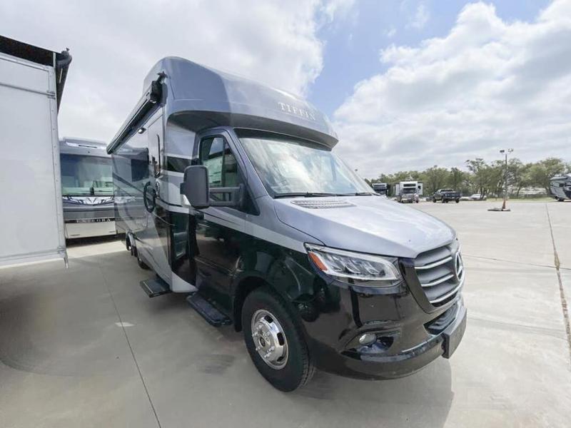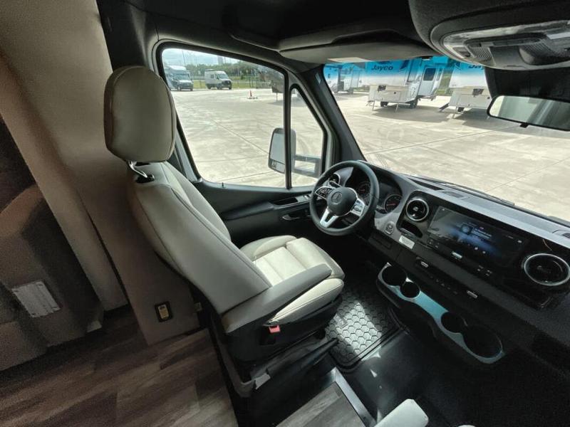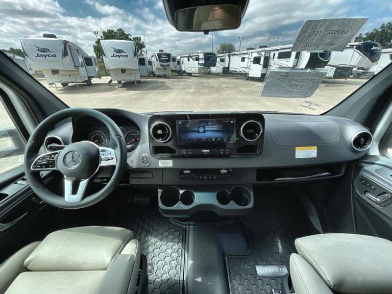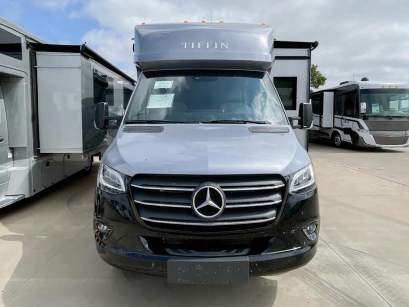 With any Wayfarer Class C diesel coach by Tiffin Motorhomes you will enjoy luxury features both inside and out. There are one-piece molded gel-coat fiberglass front and rear caps plus full-body paint and two layers of clear coat for added protection. The Mercedes-Benz 3500XD dual wheel cutaway chassis provides a strong foundation, and the 2.0L V4 turbo diesel high output 208 HP diesel engine with 332 lb-ft torque will keep you going adventure after adventure! You will love the drive just as much as the destination with adjustable captain's seats that are also heated, intelligent navigation, and a Mercedes-Benz MBUX multimedia system with a 10.25" touchscreen. Wherever you decide to roam, you will be met with interior comforts that include handcrafted overhead cabinetry, solar and privacy shades, solid surface galley countertops and task lighting, and a wardrobe in the bedroom to keep your space tidy.