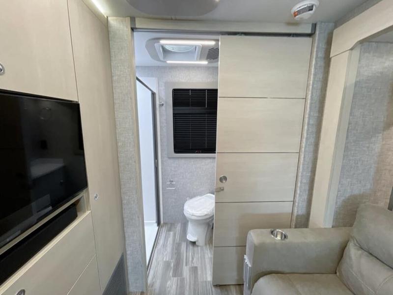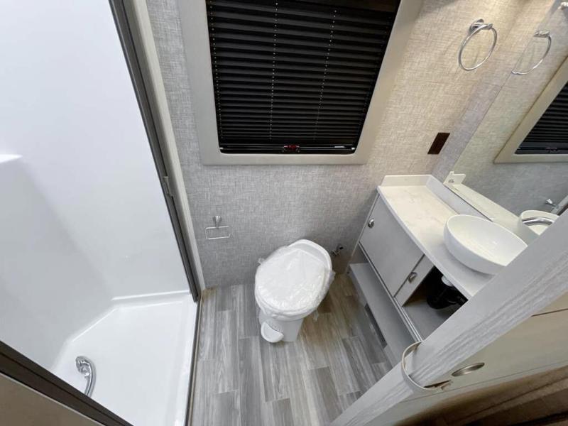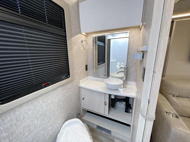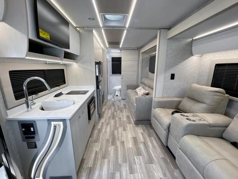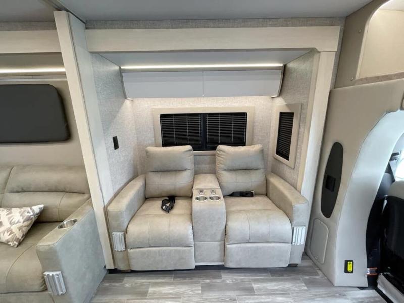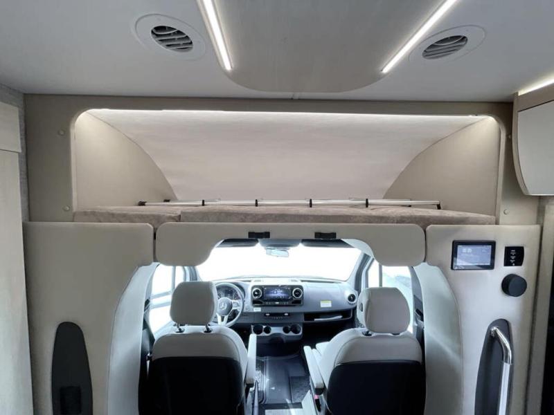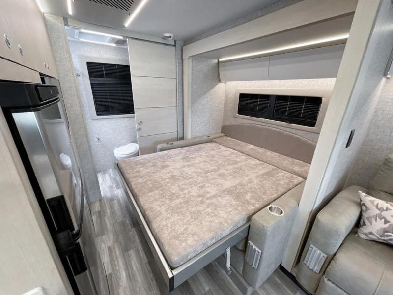 With any Wayfarer Class C diesel coach by Tiffin Motorhomes you will enjoy luxury features both inside and out. There are one-piece molded gel-coat fiberglass front and rear caps plus full-body paint and two layers of clear coat for added protection. The Mercedes-Benz 3500XD dual wheel cutaway chassis provides a strong foundation, and the 2.0L V4 turbo diesel high output 208 HP diesel engine with 332 lb-ft torque will keep you going adventure after adventure! You will love the drive just as much as the destination with adjustable captain's seats that are also heated, intelligent navigation, and a Mercedes-Benz MBUX multimedia system with a 10.25" touchscreen. Wherever you decide to roam, you will be met with interior comforts that include handcrafted overhead cabinetry, solar and privacy shades, solid surface galley countertops and task lighting, and a wardrobe in the bedroom to keep your space tidy.