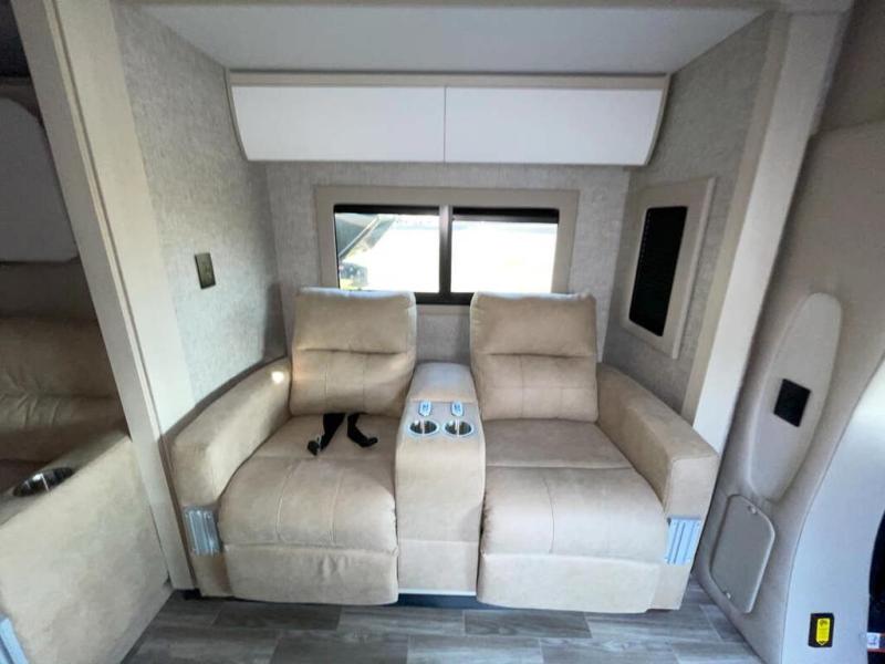 Travel with your favorite person, family, or some friends to see nature along the highways, up close and where ever the road takes you! You will find sleeping space for five with the bunk over the cab, the booth dinette-sleeper, and the versatile queen-size Murphy bed and sofa combo! The rear full bathroom gives you privacy, and the galley kitchen lets you make meals on the two burner cooktop and convection microwave oven. You might like to add a few options to customize your coach such as optional theater seating, or a tri-fold sofa in place of the dinette, a central vacuum system, an overhead entertainment center in place of the bunk, and/or an exterior TV to enjoy under the awning.
