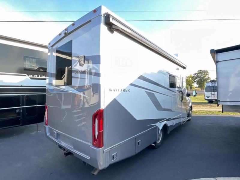 With any Wayfarer Class C diesel coach by Tiffin Motorhomes you will enjoy luxury features both inside and out. There are one-piece molded gel-coat fiberglass front and rear caps plus full-body paint and two layers of clear coat for added protection. The Mercedes-Benz 3500XD dual wheel cutaway chassis provides a strong foundation, and the 2.0L V4 turbo diesel high output 208 HP diesel engine with 332 lb-ft torque will keep you going adventure after adventure! You will love the drive just as much as the destination with adjustable captain's seats that are also heated, intelligent navigation, and a Mercedes-Benz MBUX multimedia system with a 10.25" touchscreen. Wherever you decide to roam, you will be met with interior comforts that include handcrafted overhead cabinetry, solar and privacy shades, solid surface galley countertops and task lighting, and a wardrobe in the bedroom to keep your space tidy.
