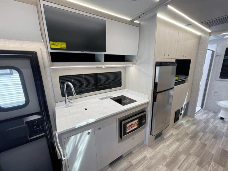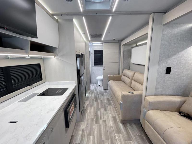 With any Wayfarer Class C diesel coach by Tiffin Motorhomes you will enjoy luxury features both inside and out. There are one-piece molded gel-coat fiberglass front and rear caps plus full-body paint and two layers of clear coat for added protection. The Mercedes-Benz 3500XD dual wheel cutaway chassis provides a strong foundation, and the 2.0L V4 turbo diesel high output 208 HP diesel engine with 332 lb-ft torque will keep you going adventure after adventure! You will love the drive just as much as the destination with adjustable captain's seats that are also heated, intelligent navigation, and a Mercedes-Benz MBUX multimedia system with a 10.25" touchscreen. Wherever you decide to roam, you will be met with interior comforts that include handcrafted overhead cabinetry, solar and privacy shades, solid surface galley countertops and task lighting, and a wardrobe in the bedroom to keep your space tidy.