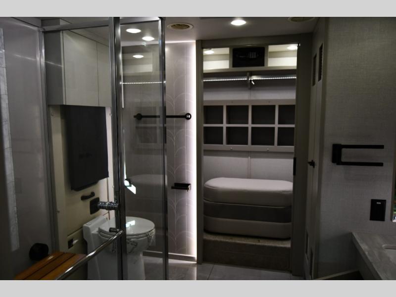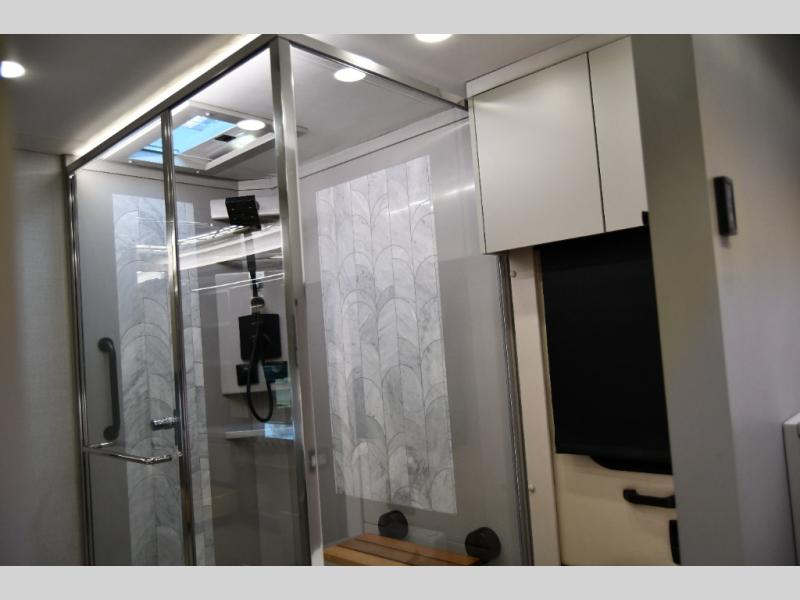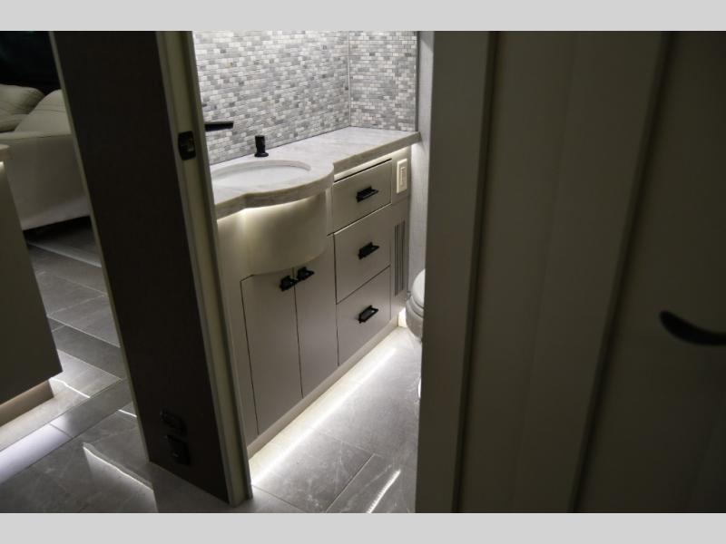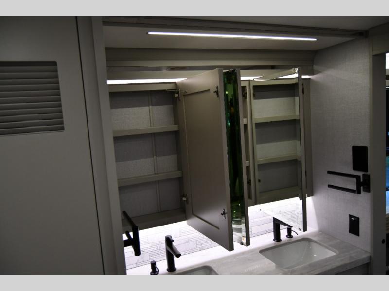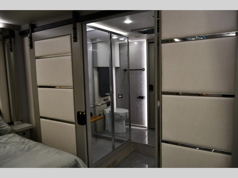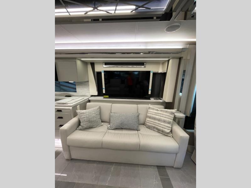 The Zephyr 45 FZ offers a spacious, spa-inspired interior with residential comfort throughout. Thoughtful design elements provide effortless flow from the living area to the gourmet kitchen and private master suite, making long-term travel or full-time luxury living seamless and indulgent.