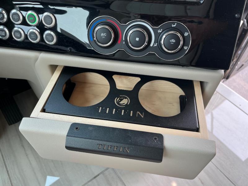 You will experience the epitome of luxury with any one of these Tiffin Motorhomes Zephyr Class A diesel motorhomes! A Cummins X15 605HP diesel engine and Allison 4000 MH 6 speed automatic transmission will power your many adventures. The 12.5 kW Onan Quiet Diesel generator will come in handy and you can store all of your outdoor necessities in the 237 cu. ft. of exterior storage space. Comfort and entertainment is as a new level with the Quartz countertops, upscale kitchen appliances, and three TV's, plus the Starlink Pro is now standard with a subscription. New features continue on with a Lippert On-The-Go exterior ladder, hot and cold water access at the front cap, new Generation 14 paint schemes, and more. You will also have your choice of chassis with either a PowerGlide rear engine diesel chassis or Freightliner PowerGlide SL raised rail rear engine diesel chassis; see dealer for more details.