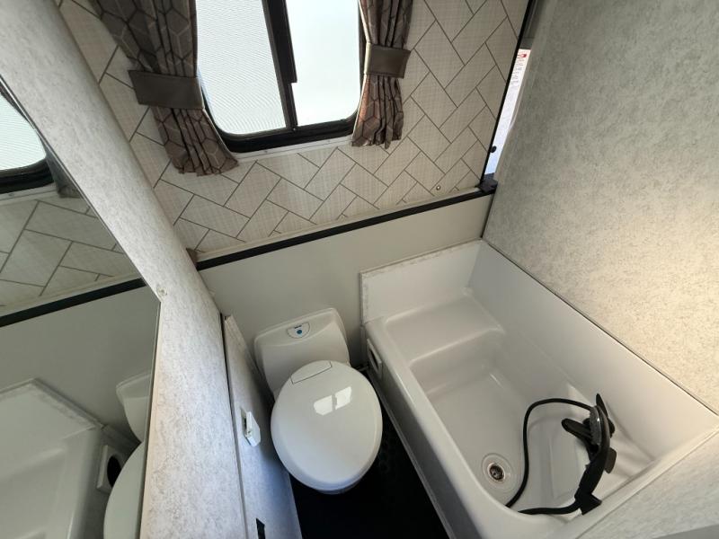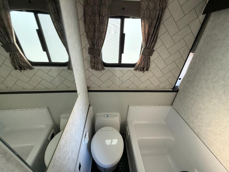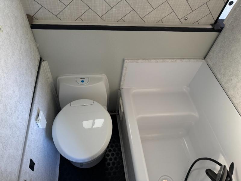 What a treat it will be to take this 2518 Series travel trailer out to the campsite! A king-size bed in the back, a full-size bed up front, and a 48" x 78" dinette all give you plenty of space to sleep six people, so that means that you can invite your friends. You can also provide delicious meals for everyone with the two-burner stove with an oven, and the 3 cubic foot refrigerator will do a nice job of keeping your favorite drinks cold. Plus, it will be so convenient to have your own toilet and shower in the dry bath.