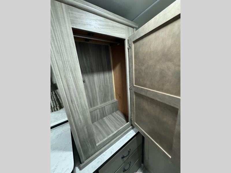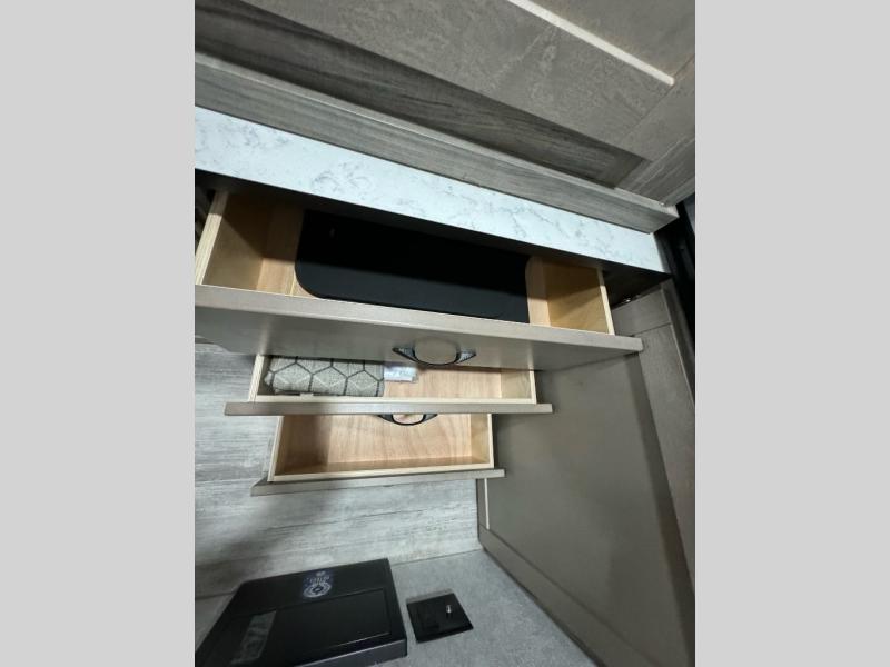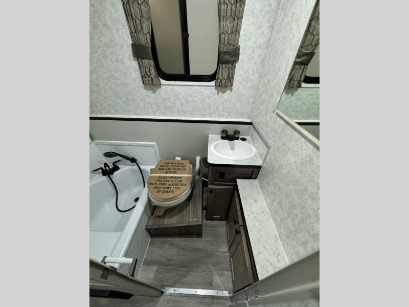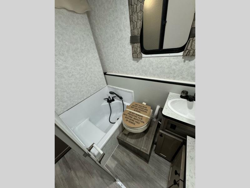 If you have a love for the great outdoors, then you will certainly love to take this 3124 Series travel trailer out to explore! The three-way refrigerator will make it easy to store your ingredients for dinner later on, and the wardrobe will hold your garments while you travel. Stay clean throughout every journey with the shower in the full bathroom, and if you want to rinse off your muddy feet before even entering this unit, you can use the outside shower.