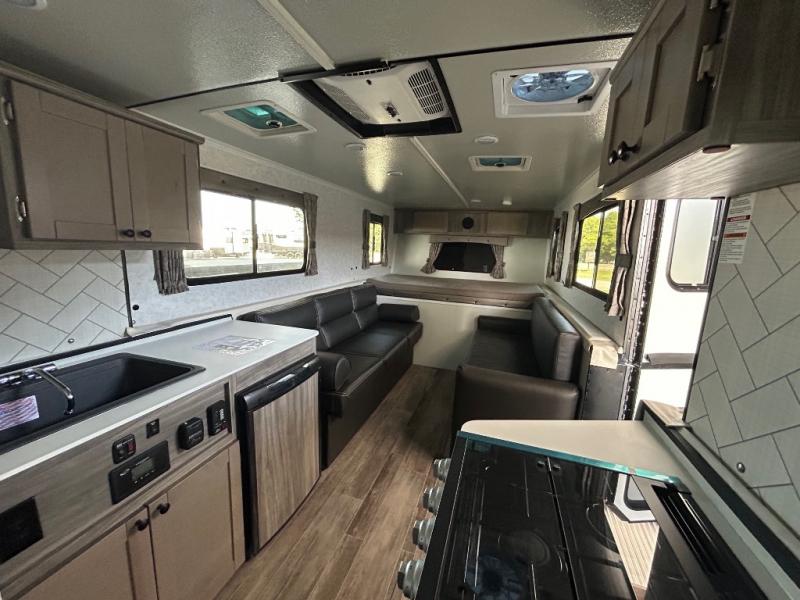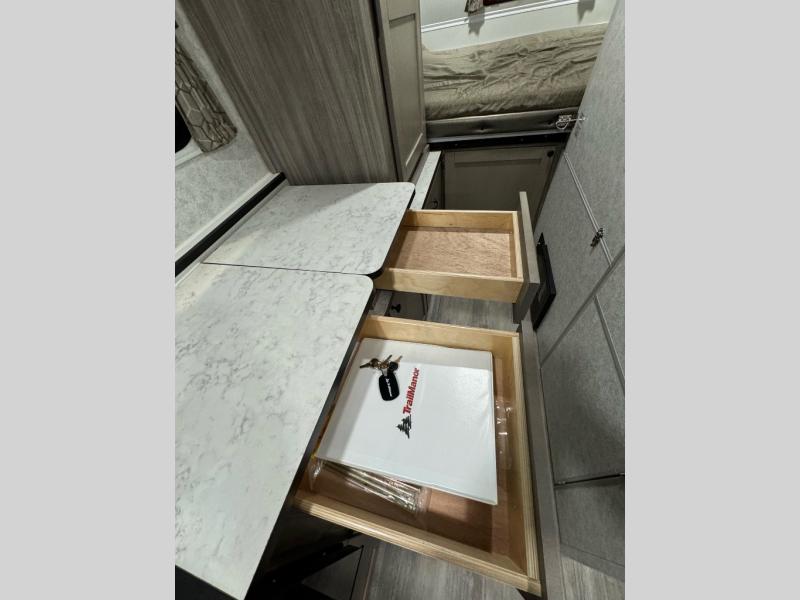 As the largest and most luxurious of the TrailManor line-up, the 3124 Series travel trailers provide lots of space and style for you and your family while you travel! Not only will you have easy setup and carefree towing, but you will also have a great list of helpful features and amenities. You will appreciate having interior LED lighting after the sun has set, and you will enjoy getting dinner prepared on the stylish marble-look countertops in the kitchen. The 2" x 5" steel frame that has been protected by a metal underbelly is a solid base for all of your travels, and the Krystal Kote exterior will catch everyone's eye.