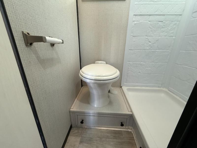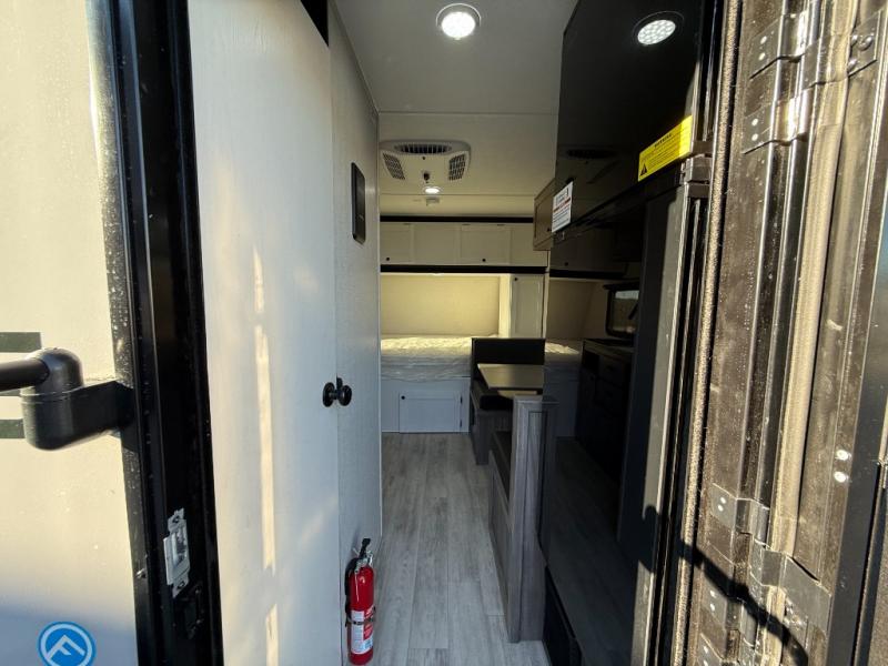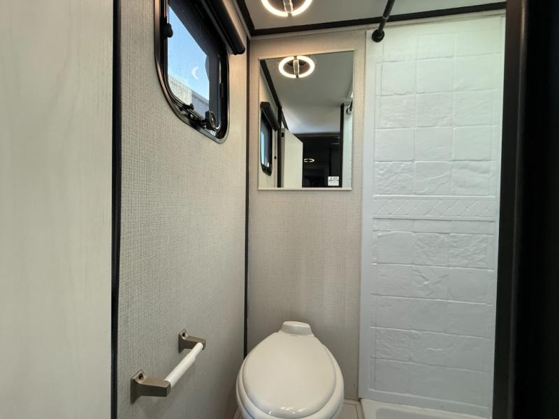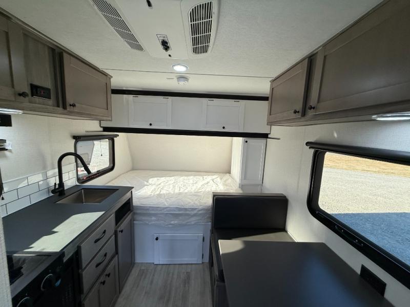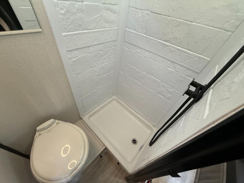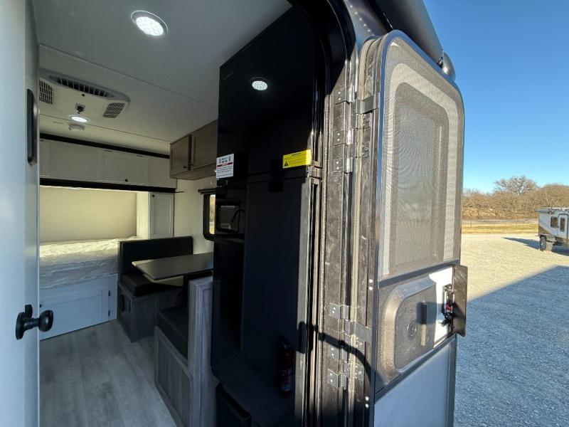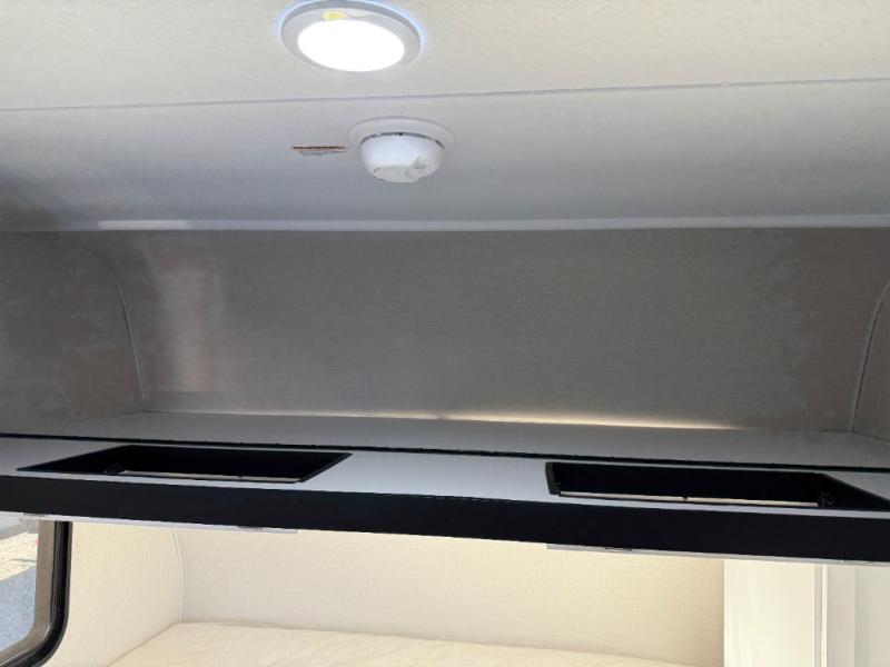 Camping trips just got a whole lot sweeter in this single axle travel trailer! You can comfortably sleep four between the front bed with a wall mounted bunk bed above plus the dinette with two seats. A two burner cooktop and an air fryer will let you make meals each day, and there is a 10.7 cu. ft. full-size Everchill 12V refrigerator to keep your cold items fresh. After you've made dinner and freshened up in the shower, head outdoor to relax under the patio awning!