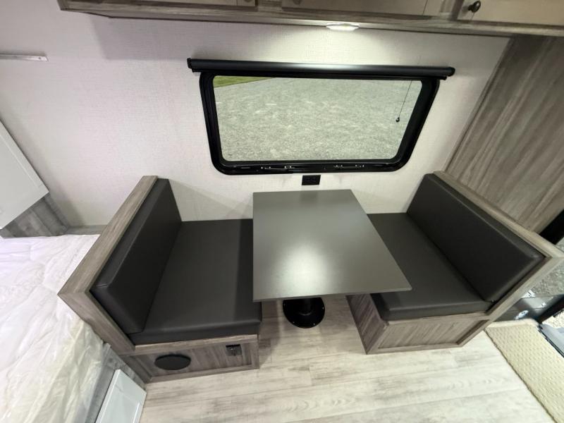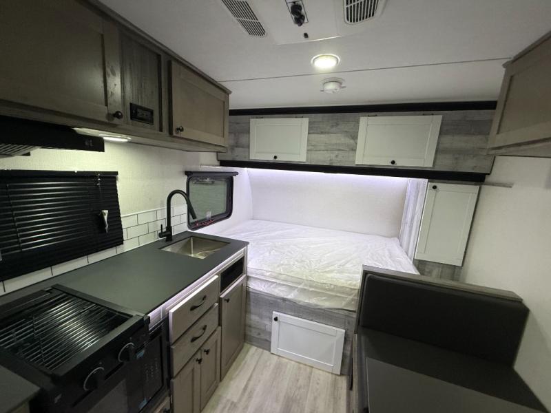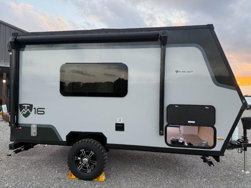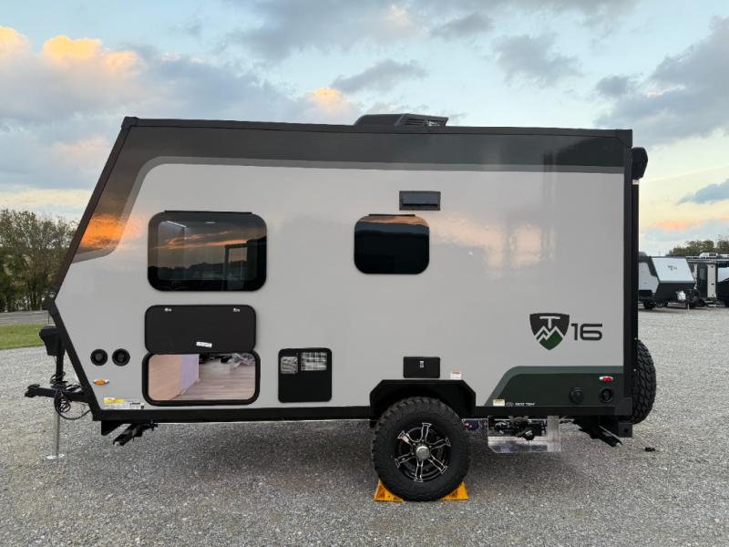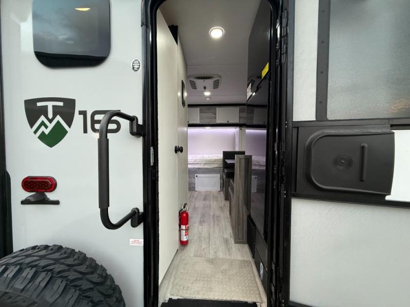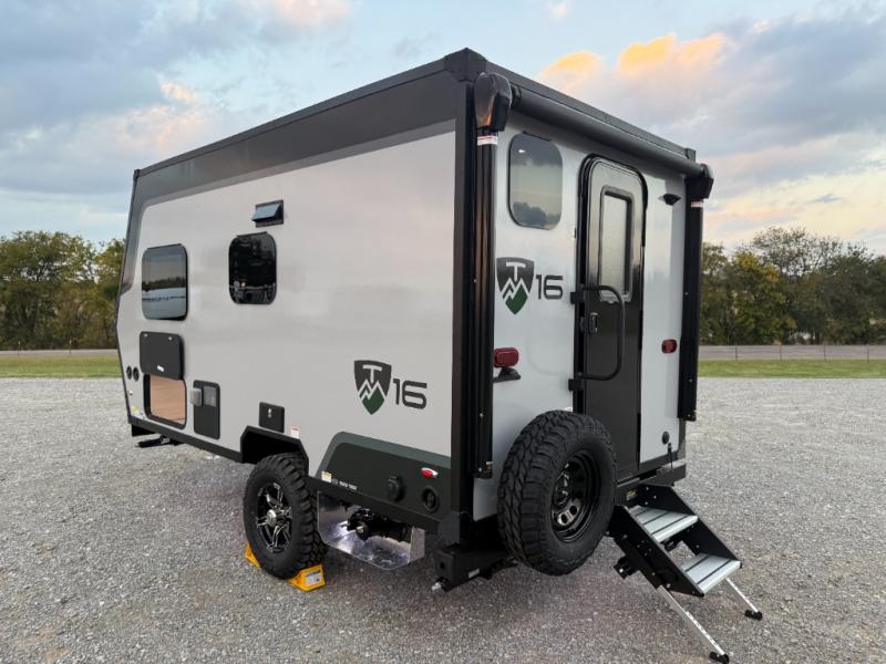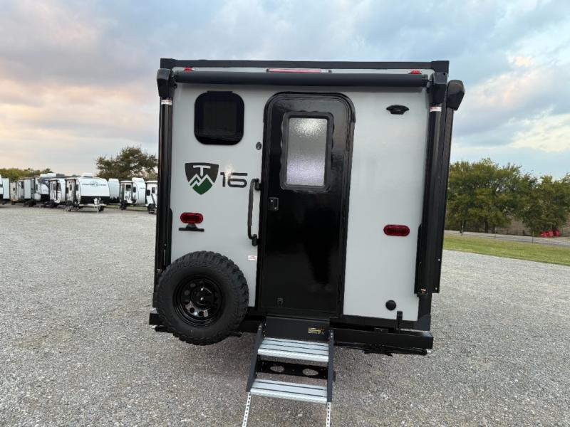 Camping trips just got a whole lot sweeter in this single axle travel trailer! You can comfortably sleep four between the front bed with a wall mounted bunk bed above plus the dinette with two seats. A two burner cooktop and an air fryer will let you make meals each day, and there is a 10.7 cu. ft. full-size Everchill 12V refrigerator to keep your cold items fresh. After you've made dinner and freshened up in the wet bath, head outdoor to relax under the patio awning! The TM 16 S Upgrade Package features off-road tires and wheels Package, a bathroom window, a wheel kit for the tongue jack, and two awnings; see dealer for more details!