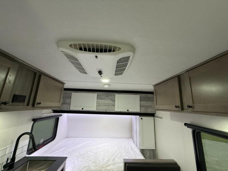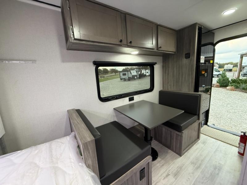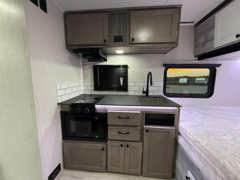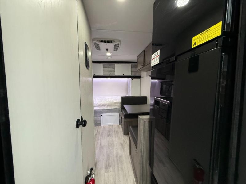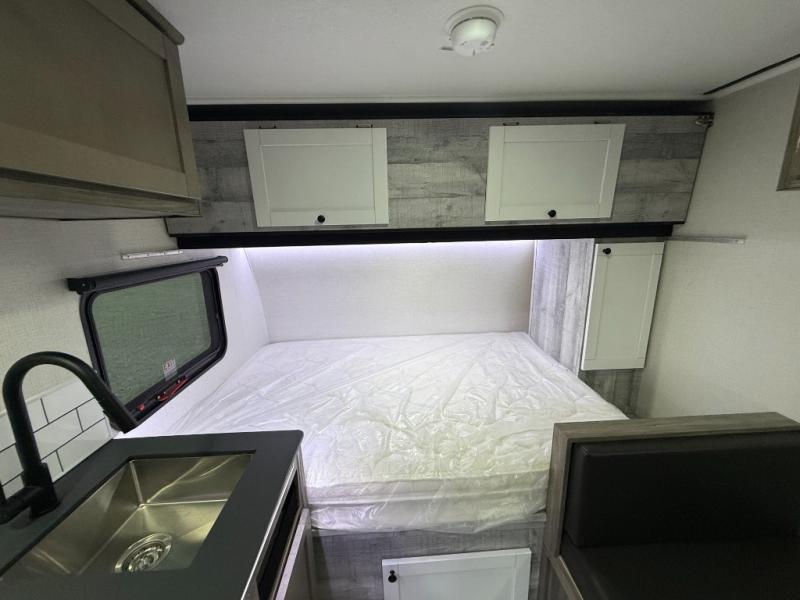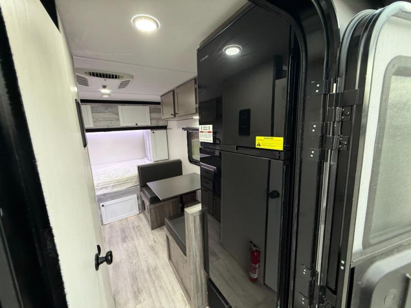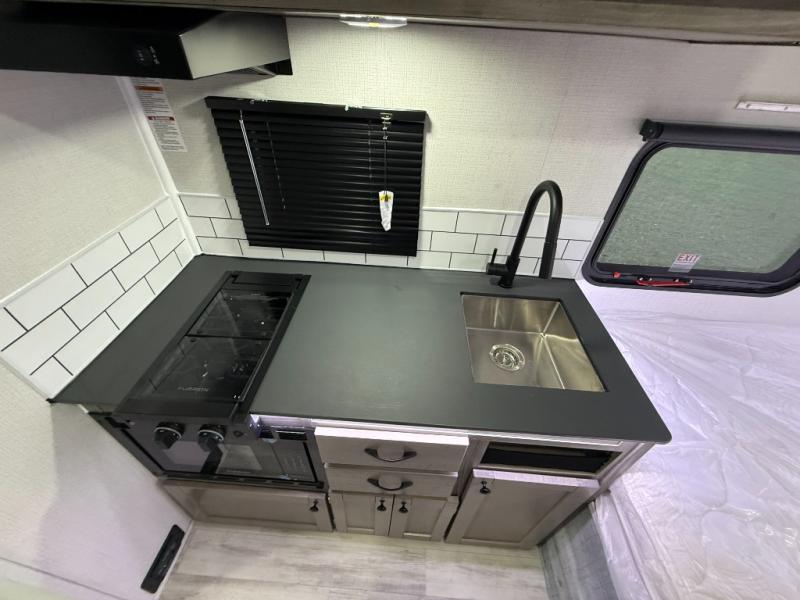 Camping trips just got a whole lot sweeter in this single axle travel trailer! You can comfortably sleep four between the front bed with a wall mounted bunk bed above plus the dinette with two seats. A two burner cooktop and an air fryer will let you make meals each day, and there is a 10.7 cu. ft. full-size Everchill 12V refrigerator to keep your cold items fresh. After you've made dinner and freshened up in the wet bath, head outdoor to relax under the patio awning! The TM 16 S Upgrade Package features off-road tires and wheels Package, a bathroom window, a wheel kit for the tongue jack, and two awnings; see dealer for more details!