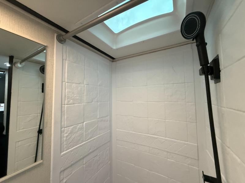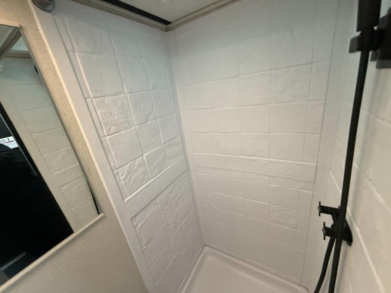The TM 16 travel trailer by TrailManor is easy to tow and even easier to love! There are self-adjusting brakes, a metal underbelly, and 2" laminated floor and walls for added strength. An outside shower also comes standard, along with solid flip-down steps, a 20 lb. LP tank, and solar prep if you want off-grid capability options. Inside, you'll find a Bluetooth power control module and a Bluetooth speaker, a 12V power outlet in the main living area, LED lights, and a Maxx air ceiling fan to keep fresh air moving.