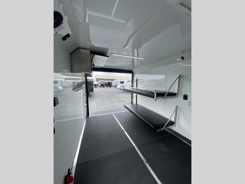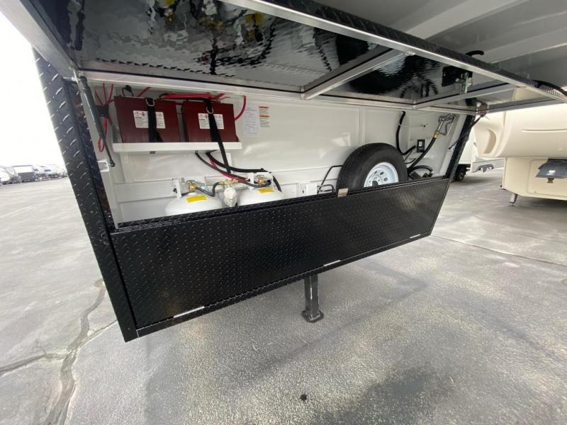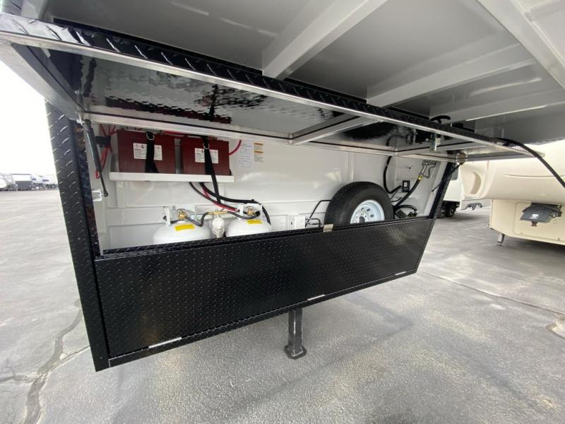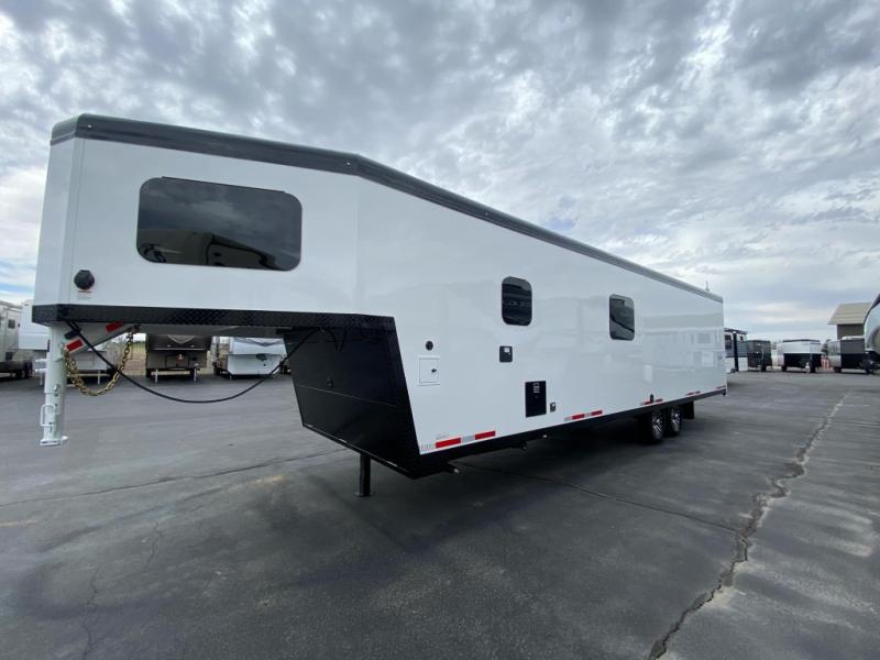 Gooseneck Toy hauler RV designed for hauling OHVs with fully equipped sleeping quarters, kitchen, shower and toilet.
