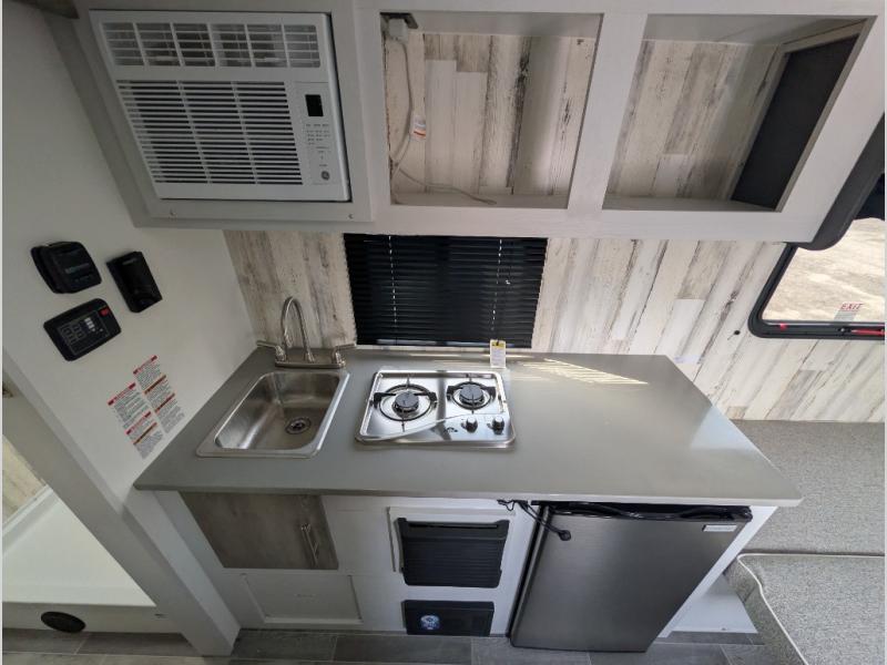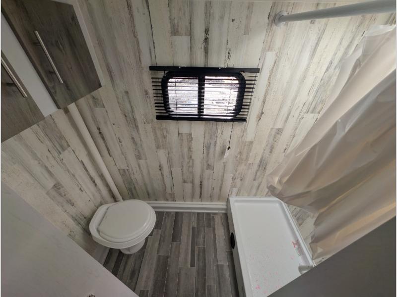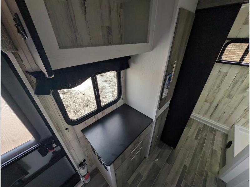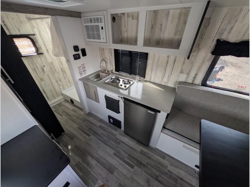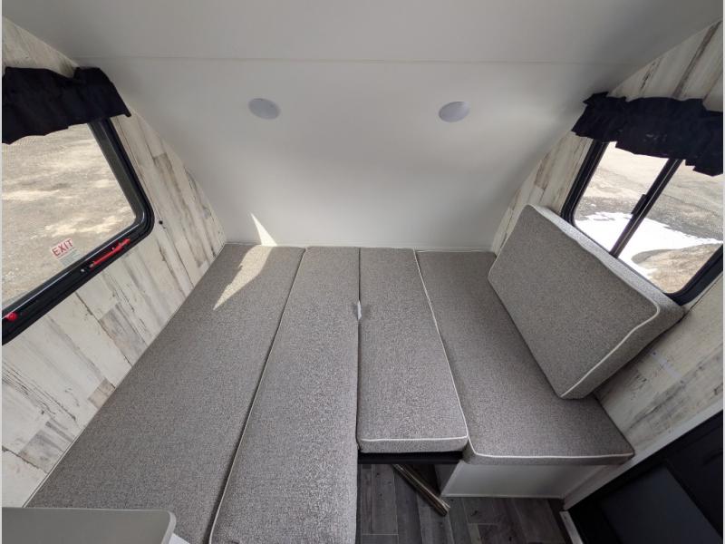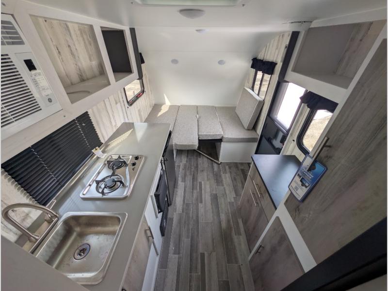 This Rove Lite can be the perfect couples adventure companion when you love the outdoors! This unit features a front booth dinette that transforms into a 54" x 74" bed to sleep on at night. There is also a full rear dry bath including a 24" x 36" shower and toilet with overhead storage for your towels and toiletries. A 13" x 15" sink is just outside the space saving sliding barn door for convenience. You will easily be able to whip up a meal or snacks with the two-burner cooktop, plenty of counter space, and a 3.3 cu. ft. 12V refrigerator for your perishables. There is storage throughout the inside for your camping necessities with several overhead cabinets and a pantry.