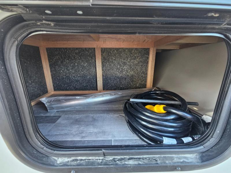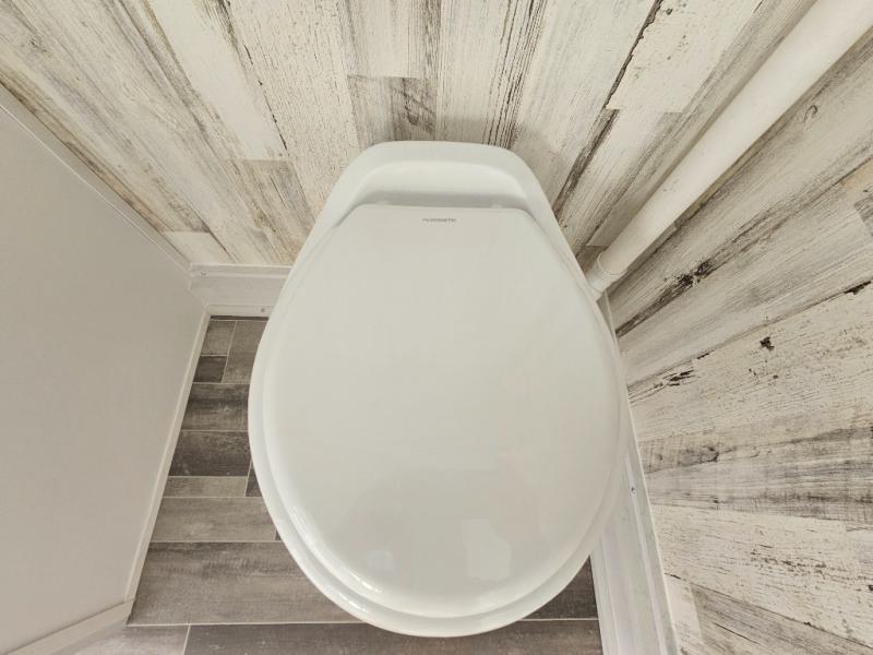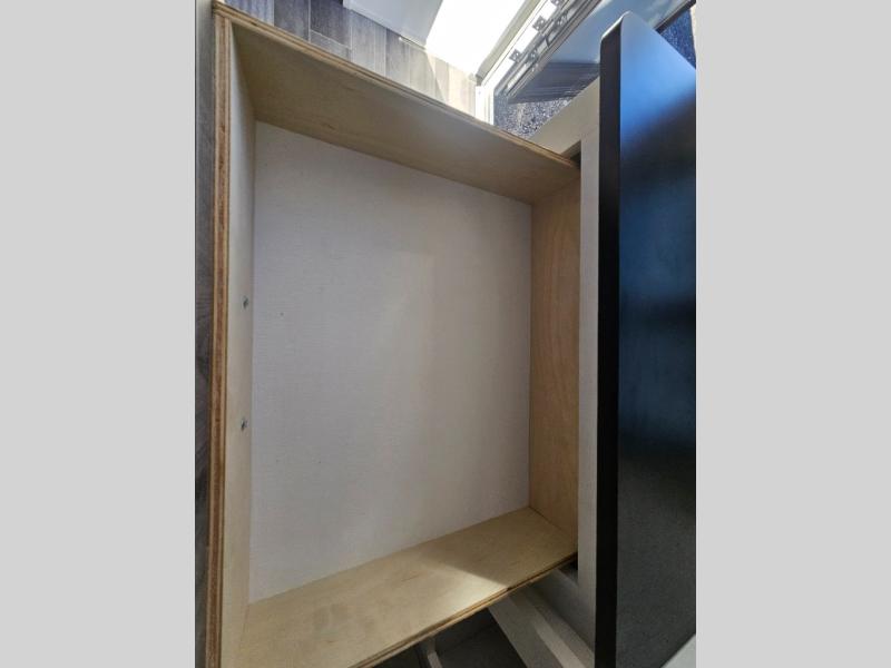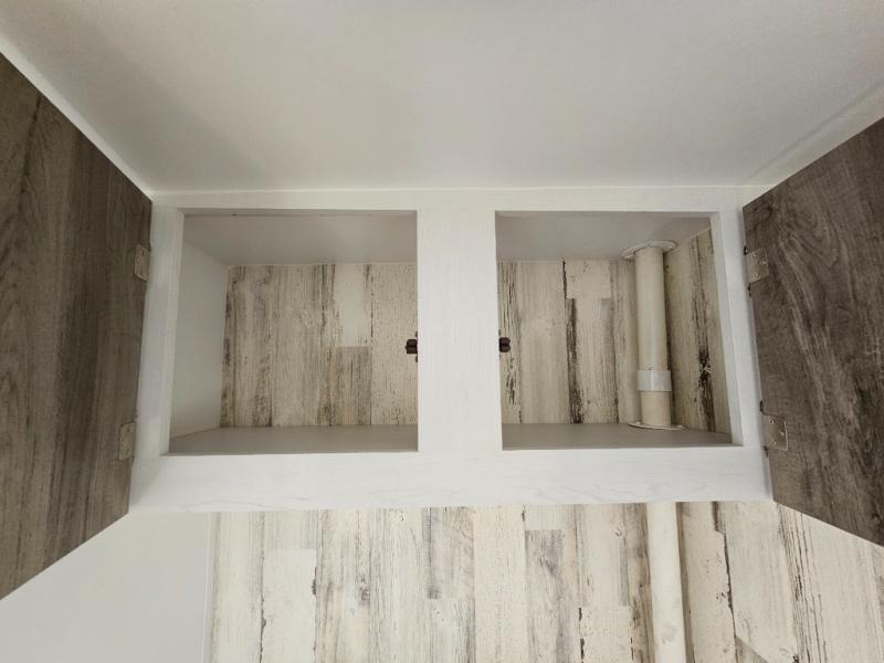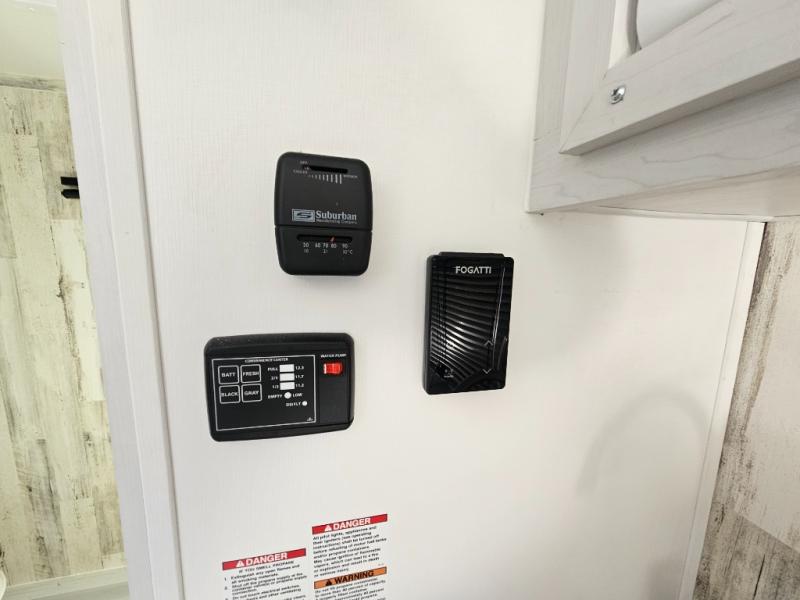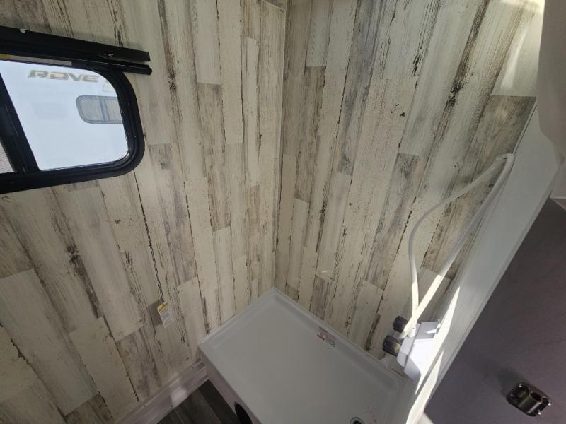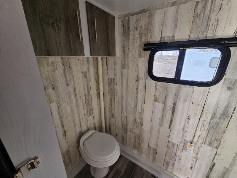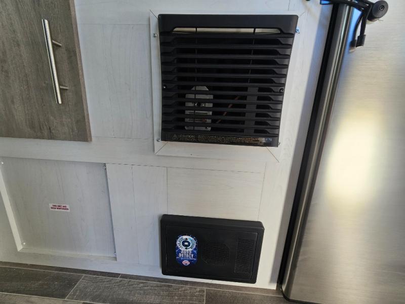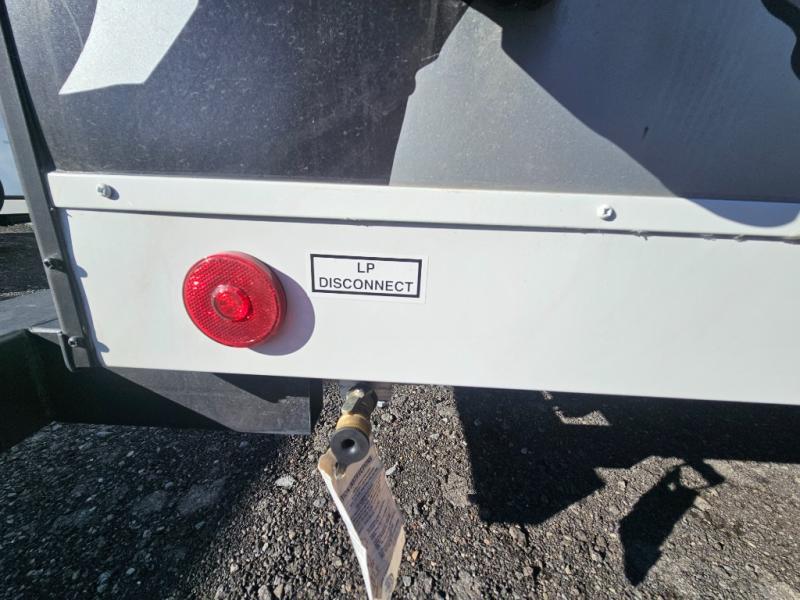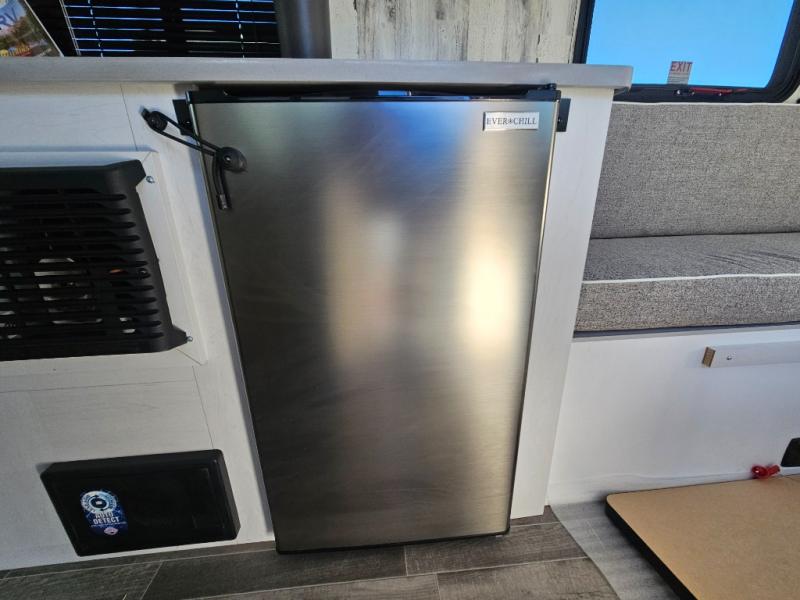 You won't believe all that is packed into this travel trailer! Prepare a delicious home cooked meal with the two burner stovetop, clean up the dishes in the 13" x 15" single bowl sink, and store any leftovers in the below the counter 12V 3 cu. ft. refrigerator, plus there is a trash can below additional countertop space next to the pantry. The front booth dinette is great for eating meals, playing games, and transforming into an extra sleeping space. There is shelving and overhead cabinets to store your items. The rear private bathroom has a 24" x 36" shower to freshen up in and a sliding barn door for privacy.