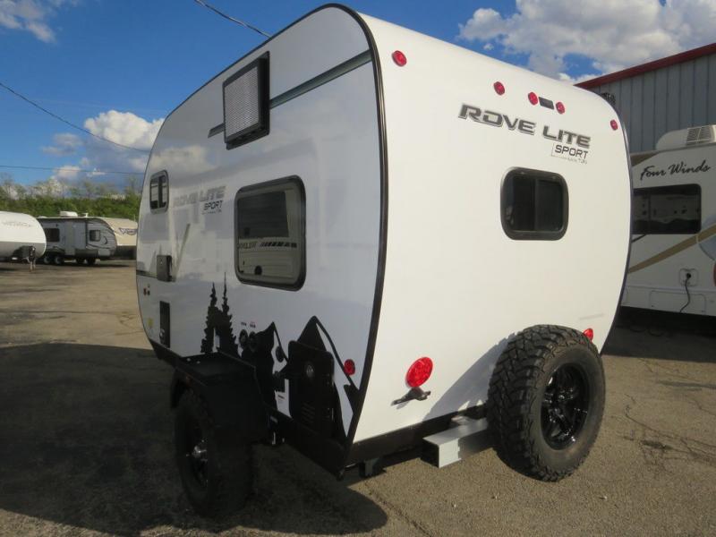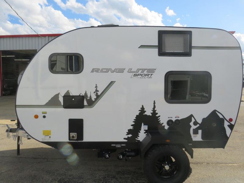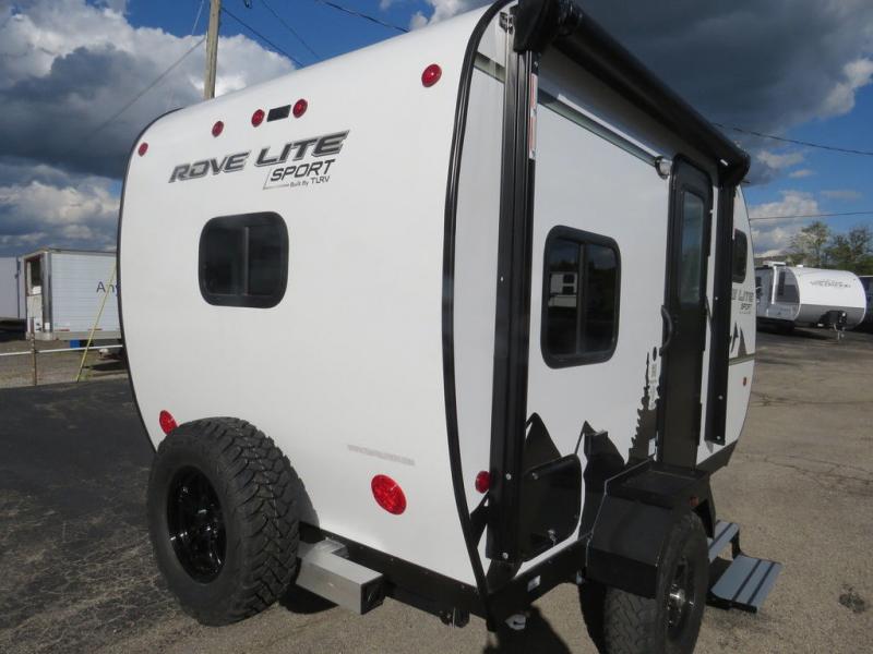 The Rove Lite Sport travel trailer by Travel Lite proves sometimes great things come in small packages! With only a 1,550 lbs. dry weight, this unit is lightweight and easy to tow! You will also love how affordable it is, and the durable aluminum chassis means you can enjoy camping for years to come. There is also a Tuson sway control, 13" custom lite-weight aluminum wheels, and an outside shower. The optional Offroad Package is available which includes 15" tires and rimes, a raised suspension, a double step, and heavy duty fenders if you plan to go off the beaten path!