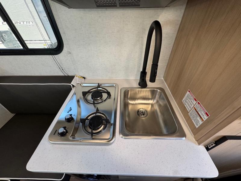The Up Country XS by Travel Lite is a sturdy yet lightweight truck camper that can go deep into the woods. The wood-free construction includes a Hydro-Lite exterior, one piece roof construction, and laminated floors. A monitor panel allows you to keep an eye on the systems, and there's prep for a backup camera as well. A 20K BTU furnace extends the camping season into the cooler months, and you can add an optional 15K BTU roof mount air conditioner for the hot summer too! No matter the weather, you'll enjoy the stereo with indoor and outdoor speakers.