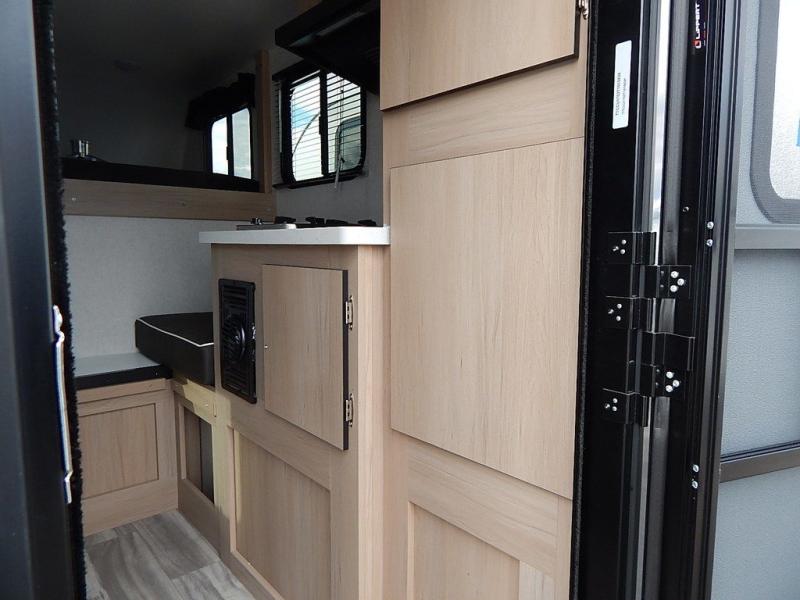 The Up Country XS by Travel Lite is a sturdy yet lightweight truck camper that can go deep into the woods. The wood-free construction includes a Hydro-Lite exterior, one piece roof construction, and laminated floors. A monitor panel allows you to keep an eye on the systems, and there's prep for a backup camera as well. A 20K BTU furnace extends the camping season into the cooler months, and you can add an optional 15K BTU roof mount air conditioner for the hot summer too! No matter the weather, you'll enjoy the stereo with indoor and outdoor speakers.