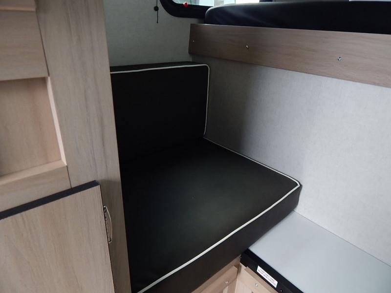 You'll love traveling the country with this cozy truck camper on your back! The front 48" x 75" bed provides a place to rest your head each night, and there are two bench seats for seating space during the day. A two burner cooktop will let you cook meals, and the 12V refrigerator will be perfect to keep cold items fresh. This unit also includes a pantry for paper goods and snacks, and the shower on board is sure to come in handy!