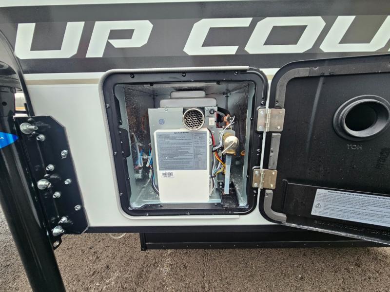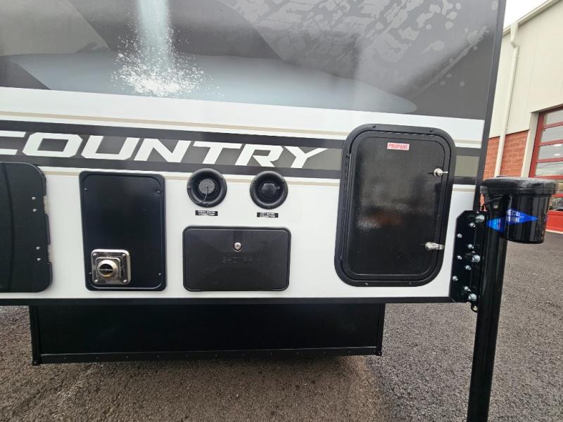 The Up Country by Travel Lite is a sturdy yet lightweight truck camper that can go deep into the woods. The wood-free construction includes a Hydro-Lite exterior, aluminum trussed roof, and laminated floors. A monitor panel allows you to keep an eye on the systems, and there's prep for a backup camera as well. A 20K BTU furnace extends the camping season into the cooler months, and you can add an optional 15K BTU roof mount air conditioner for the hot summer too! No matter the weather, you'll enjoy the stereo with indoor and outdoor speakers.