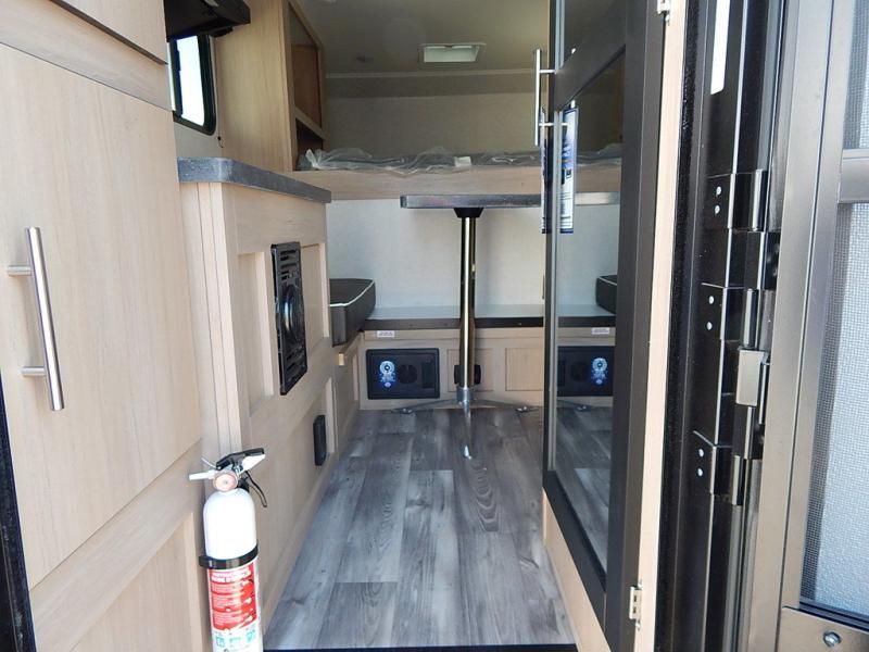 The Up Country by Travel Lite is a sturdy yet lightweight truck camper that can go deep into the woods. The wood-free construction includes a Hydro-Lite exterior, aluminum trussed roof, and laminated floors. A monitor panel allows you to keep an eye on the systems, and there's prep for a backup camera as well. A 20K BTU furnace extends the camping season into the cooler months, and you can add an optional 15K BTU roof mount air conditioner for the hot summer too! No matter the weather, you'll enjoy the stereo with indoor and outdoor speakers.