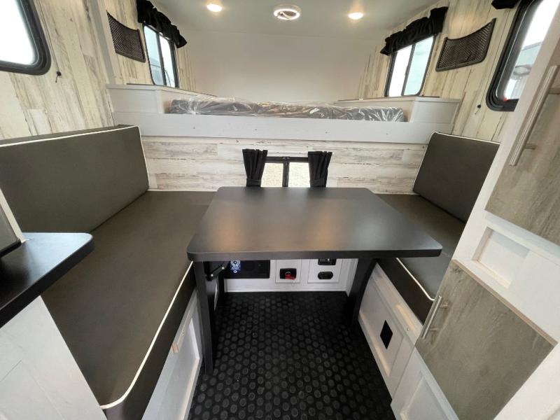 The Up Country by Travel Lite is a sturdy yet lightweight truck camper that can go deep into the woods. The wood-free construction includes a Hydro-Lite exterior, aluminum trussed roof, and laminated floors. A monitor panel allows you to keep an eye on the systems, and there's prep for a backup camera as well. A 20K BTU furnace extends the camping season into the cooler months, and you can add an optional 15K BTU roof mount air conditioner for the hot summer too! No matter the weather, you'll enjoy the stereo with indoor and outdoor speakers.