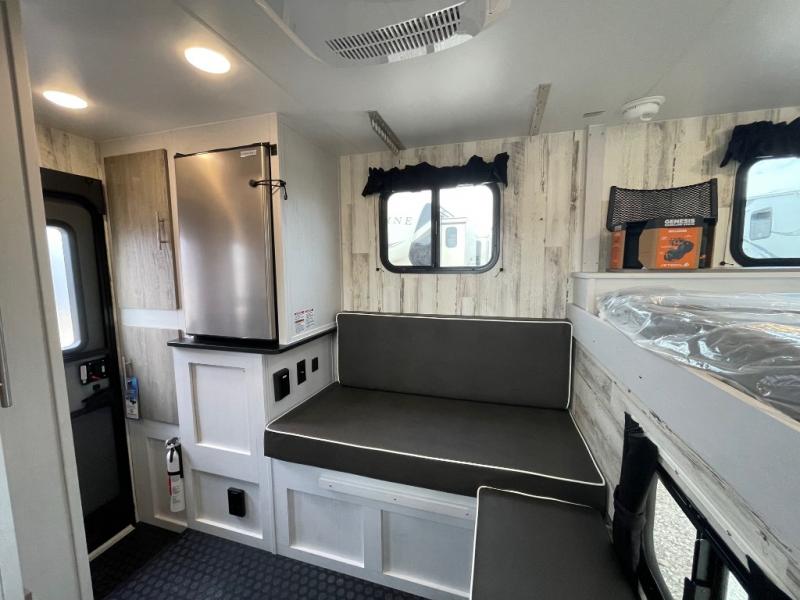 The Up Country by Travel Lite is a sturdy yet lightweight truck camper that can go deep into the woods. The wood-free construction includes a Hydro-Lite exterior, aluminum trussed roof, and laminated floors. A monitor panel allows you to keep an eye on the systems, and there's prep for a backup camera as well. A 20K BTU furnace extends the camping season into the cooler months, and you can add an optional 15K BTU roof mount air conditioner for the hot summer too! No matter the weather, you'll enjoy the stereo with indoor and outdoor speakers.