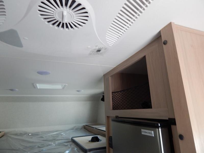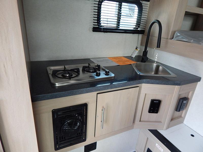 The Up Country by Travel Lite is a sturdy yet lightweight truck camper that can go deep into the woods. The wood-free construction includes a Hydro-Lite exterior, aluminum trussed roof, and laminated floors. A monitor panel allows you to keep an eye on the systems, and there's prep for a backup camera as well. A 20K BTU furnace extends the camping season into the cooler months, and you can add an optional 15K BTU roof mount air conditioner for the hot summer too! No matter the weather, you'll enjoy the stereo with indoor and outdoor speakers.